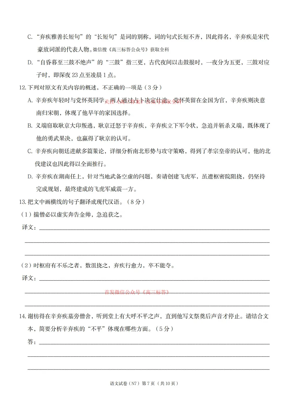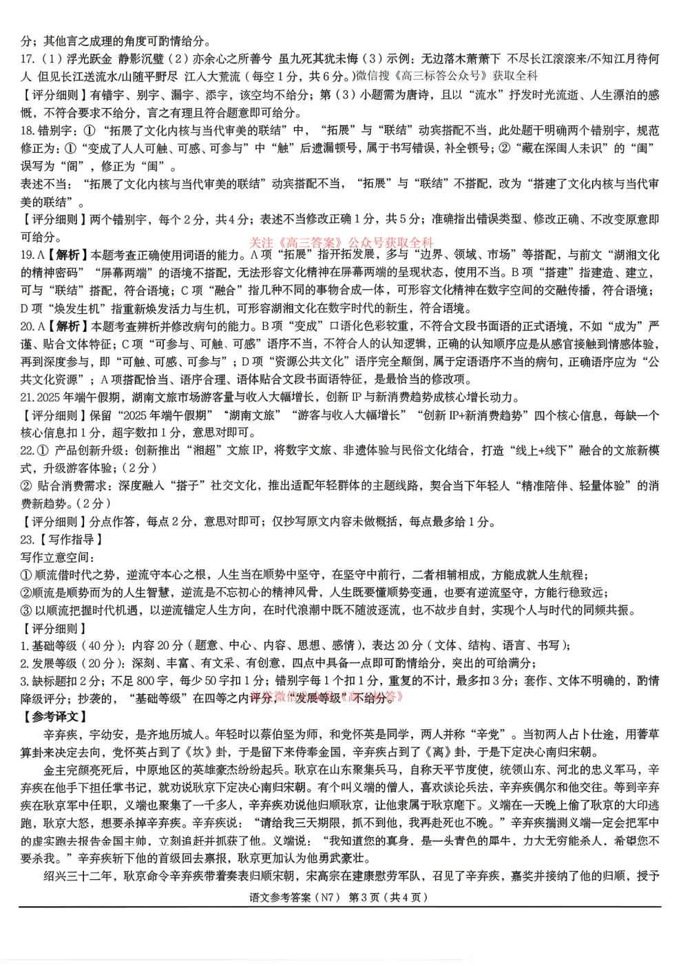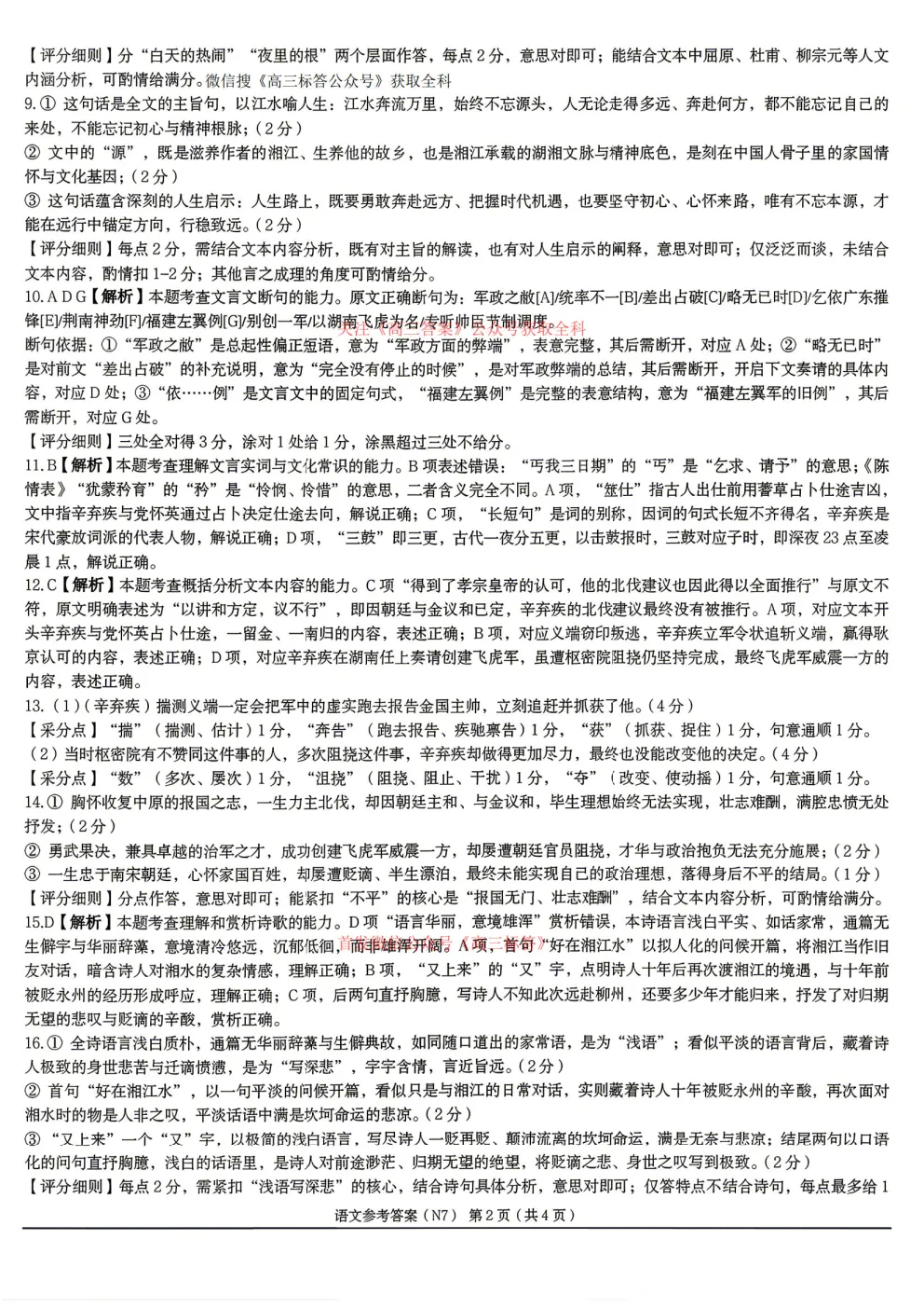 2026长郡中学高三月考试卷七答案