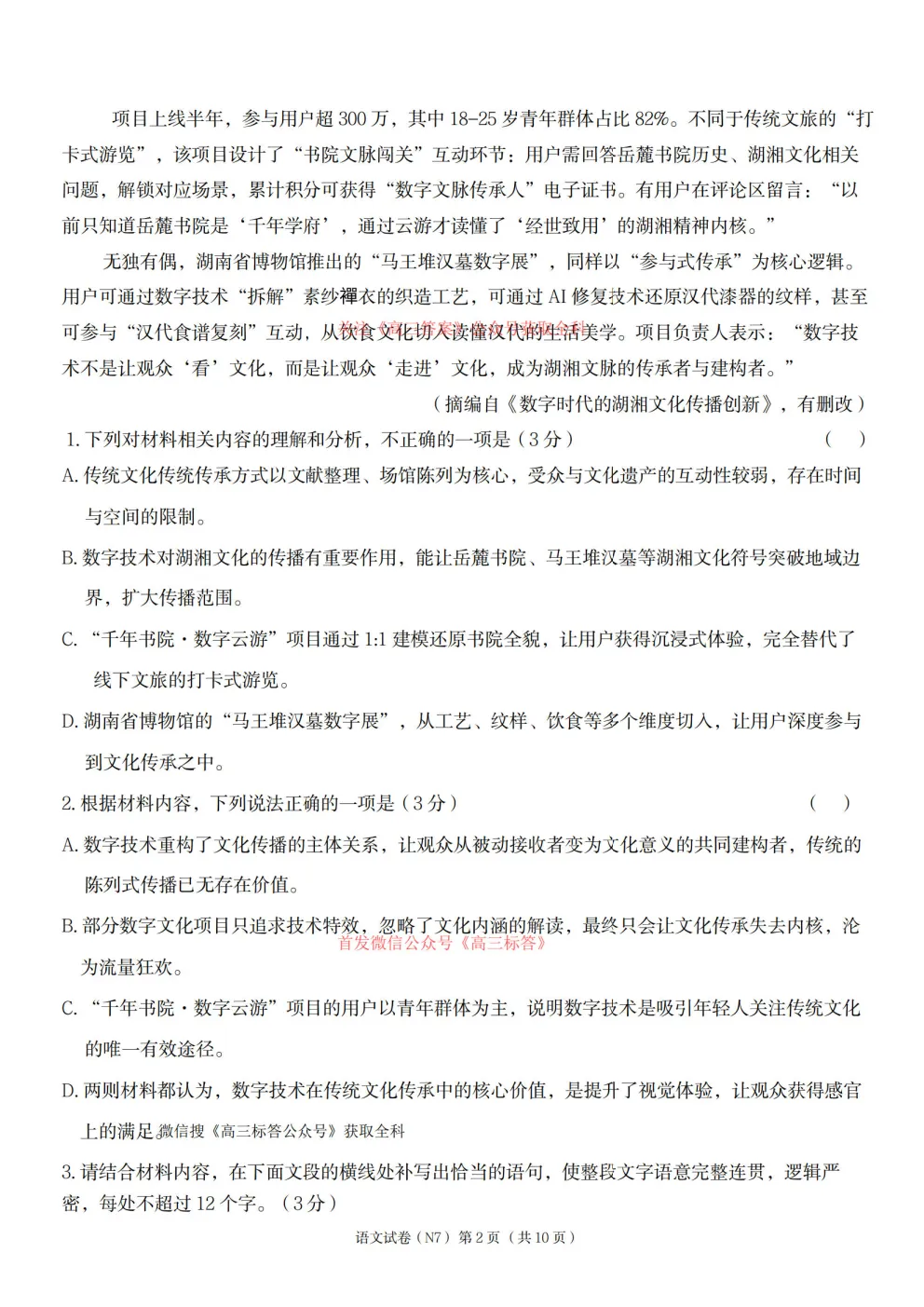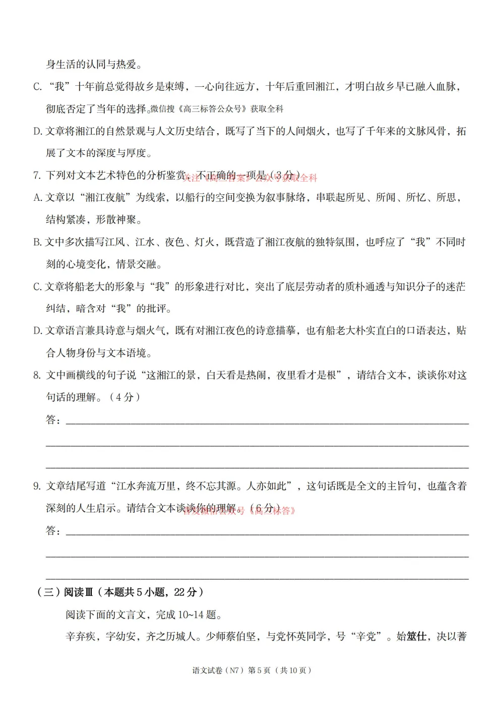 2026年全国高考冲刺压轴卷一语文、数学、英语答案 2026年全国高考冲刺压轴卷一语文、数学、英语答案