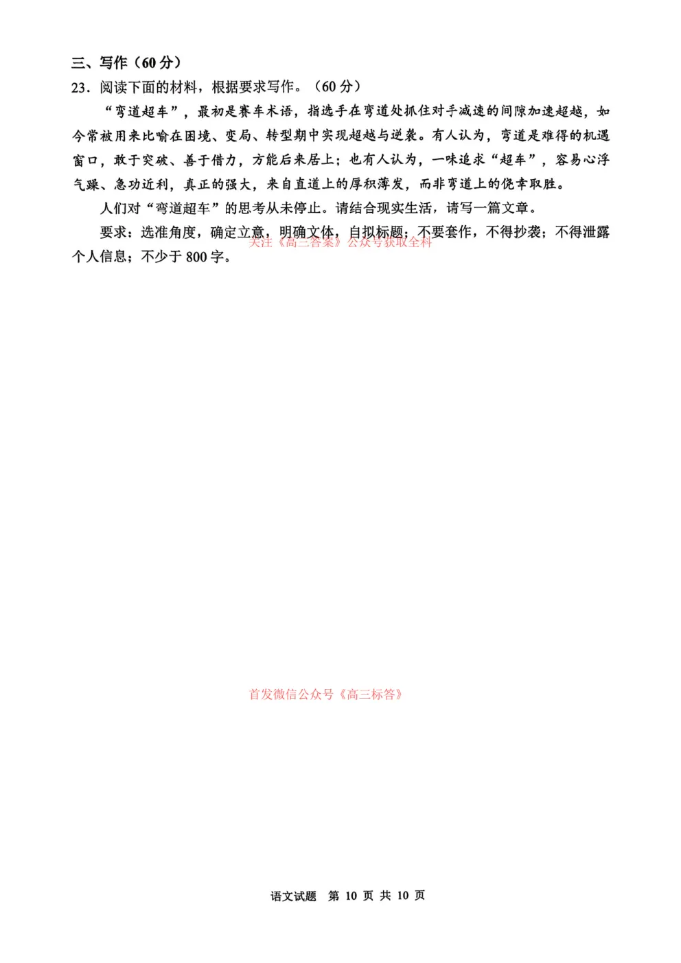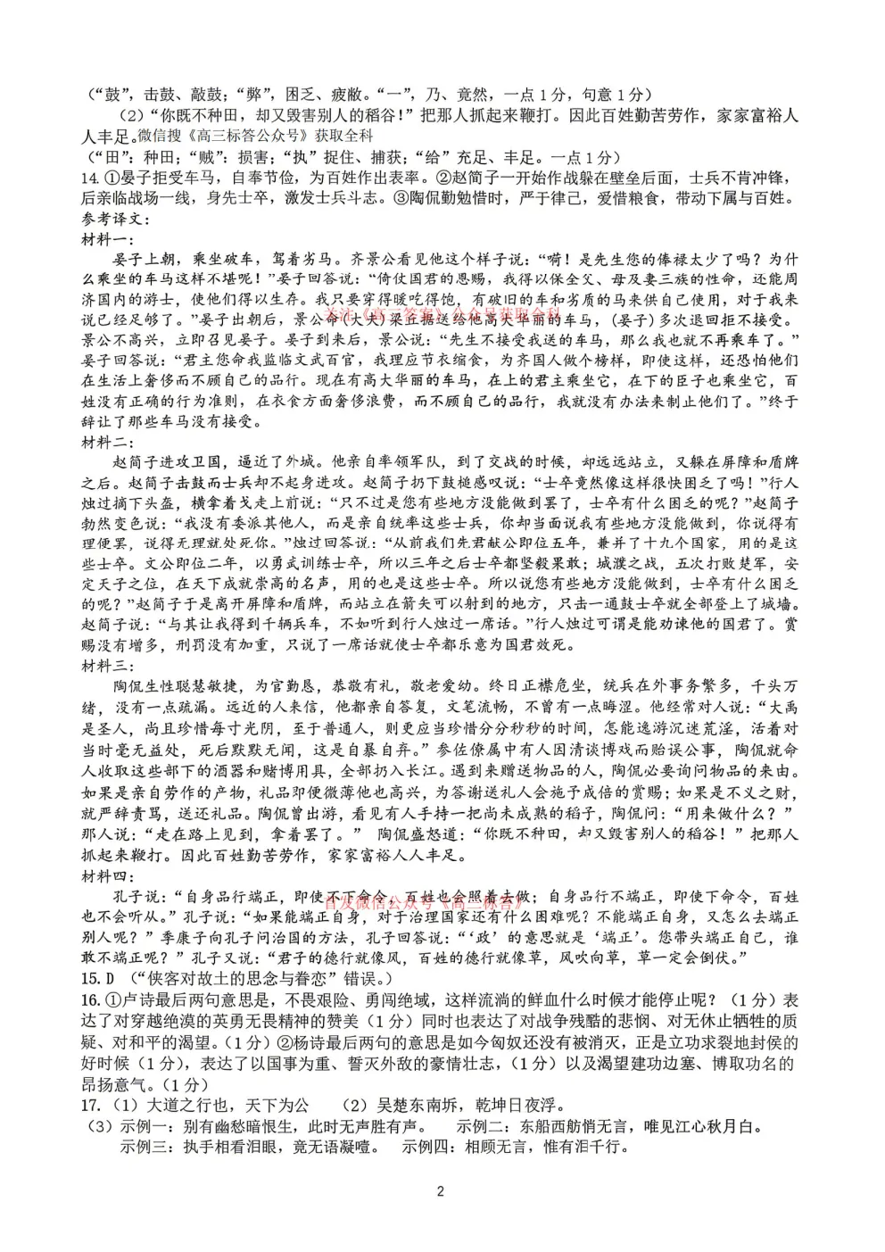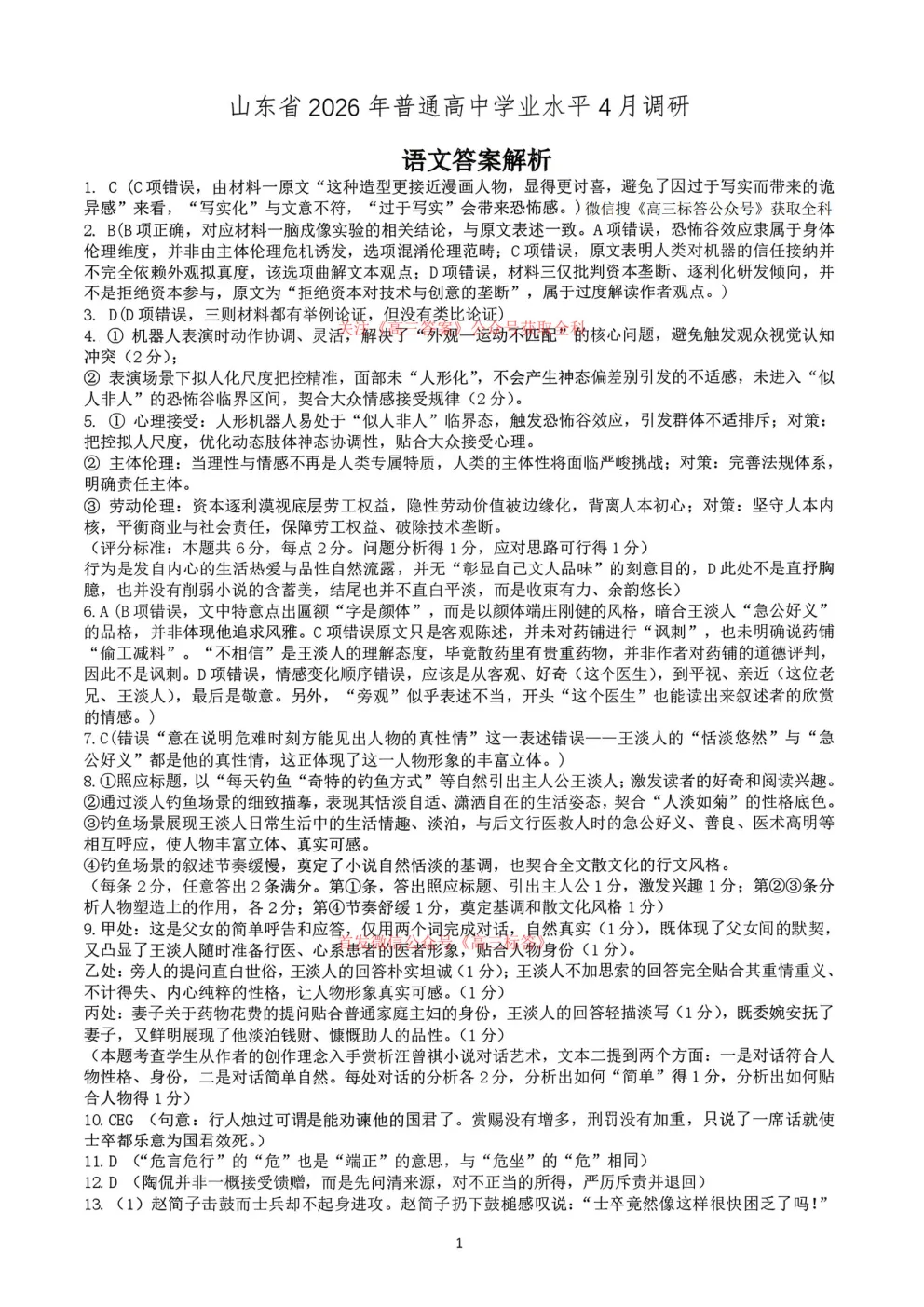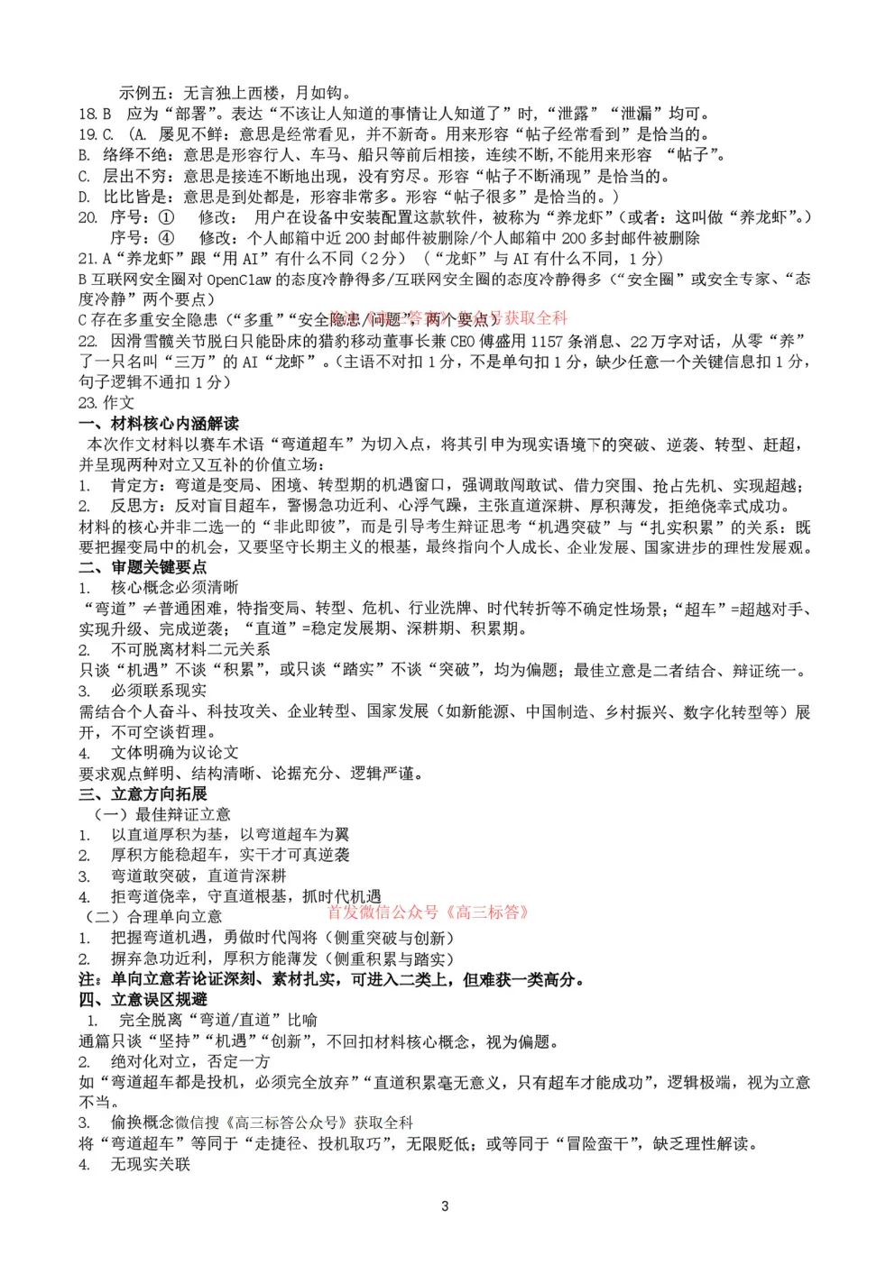 2026年全国高考冲刺压轴卷一语文、数学、英语答案 2026年全国高考冲刺压轴卷一语文、数学、英语答案