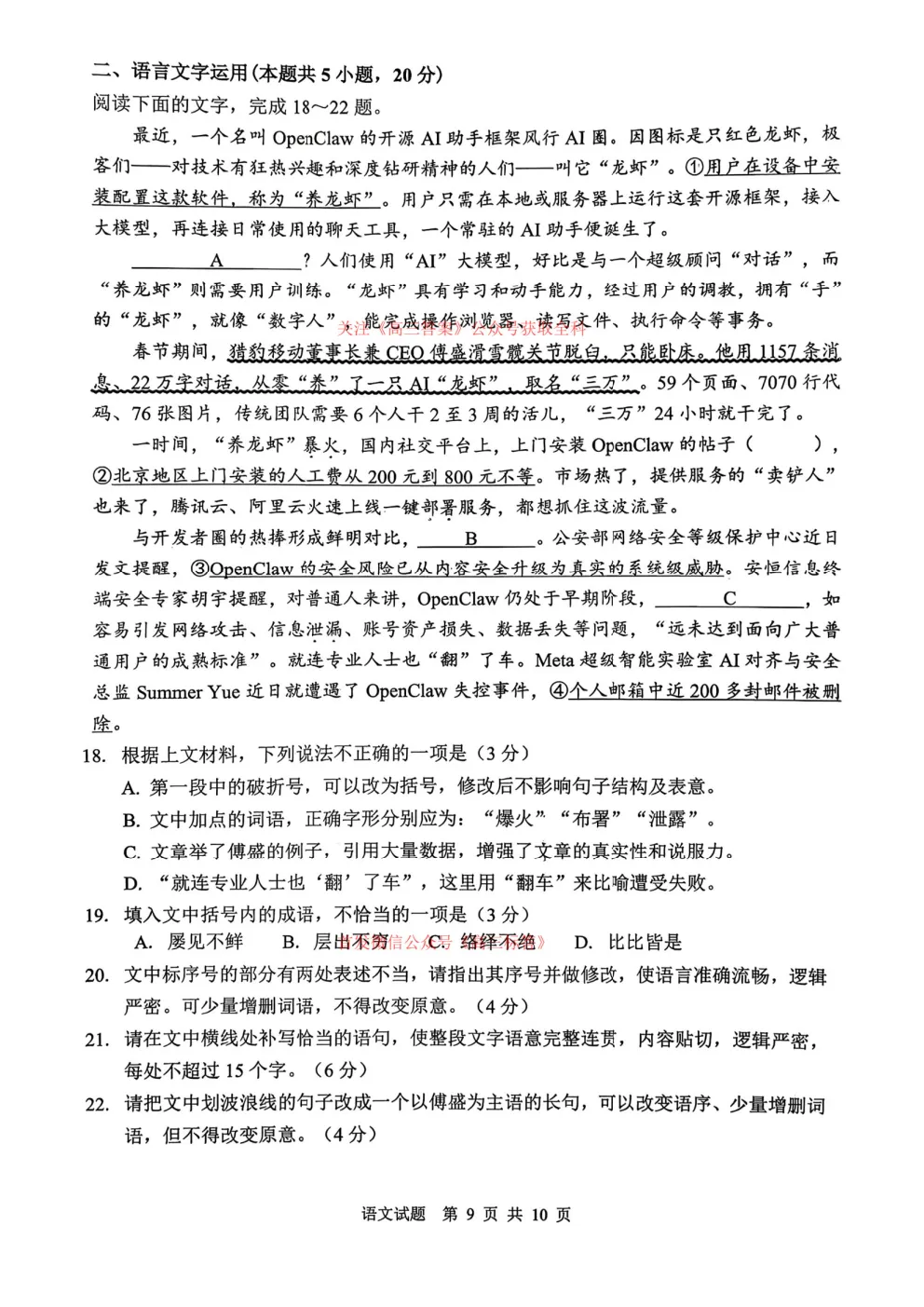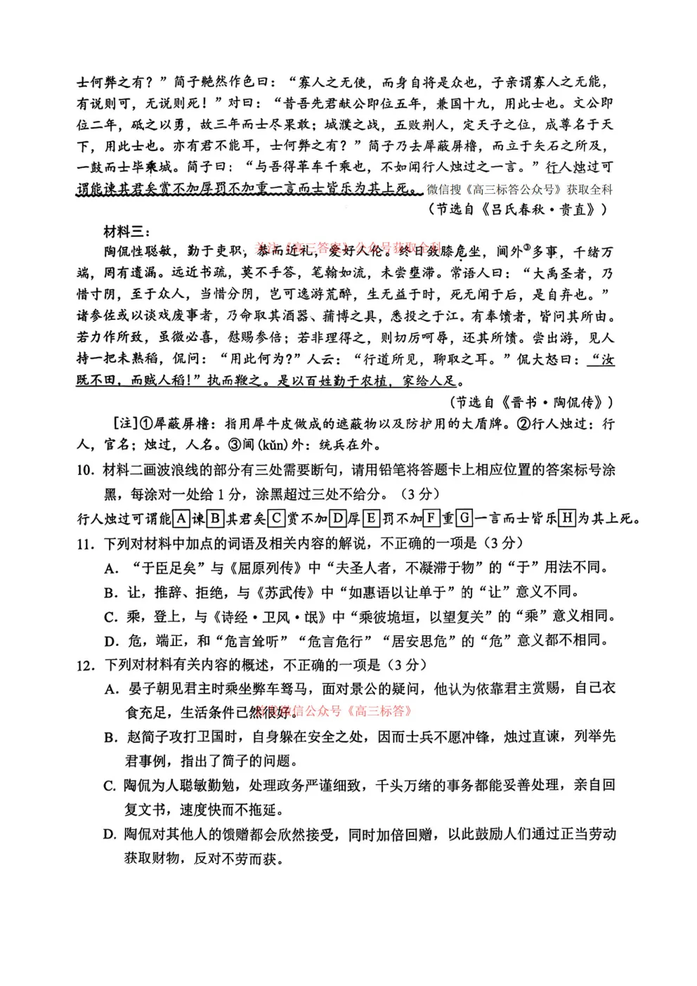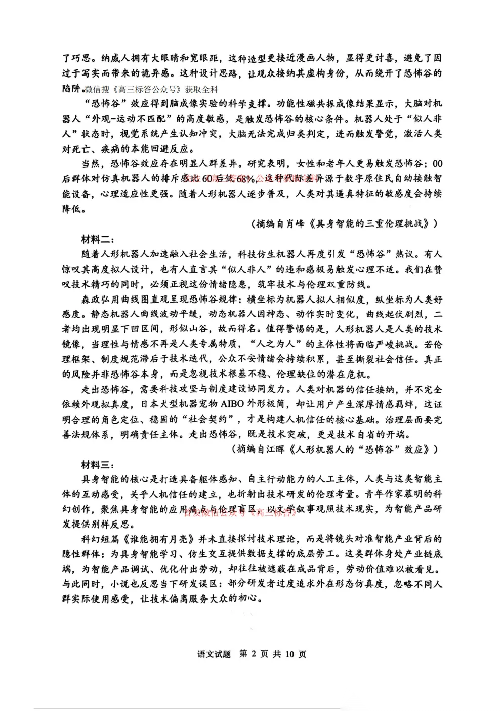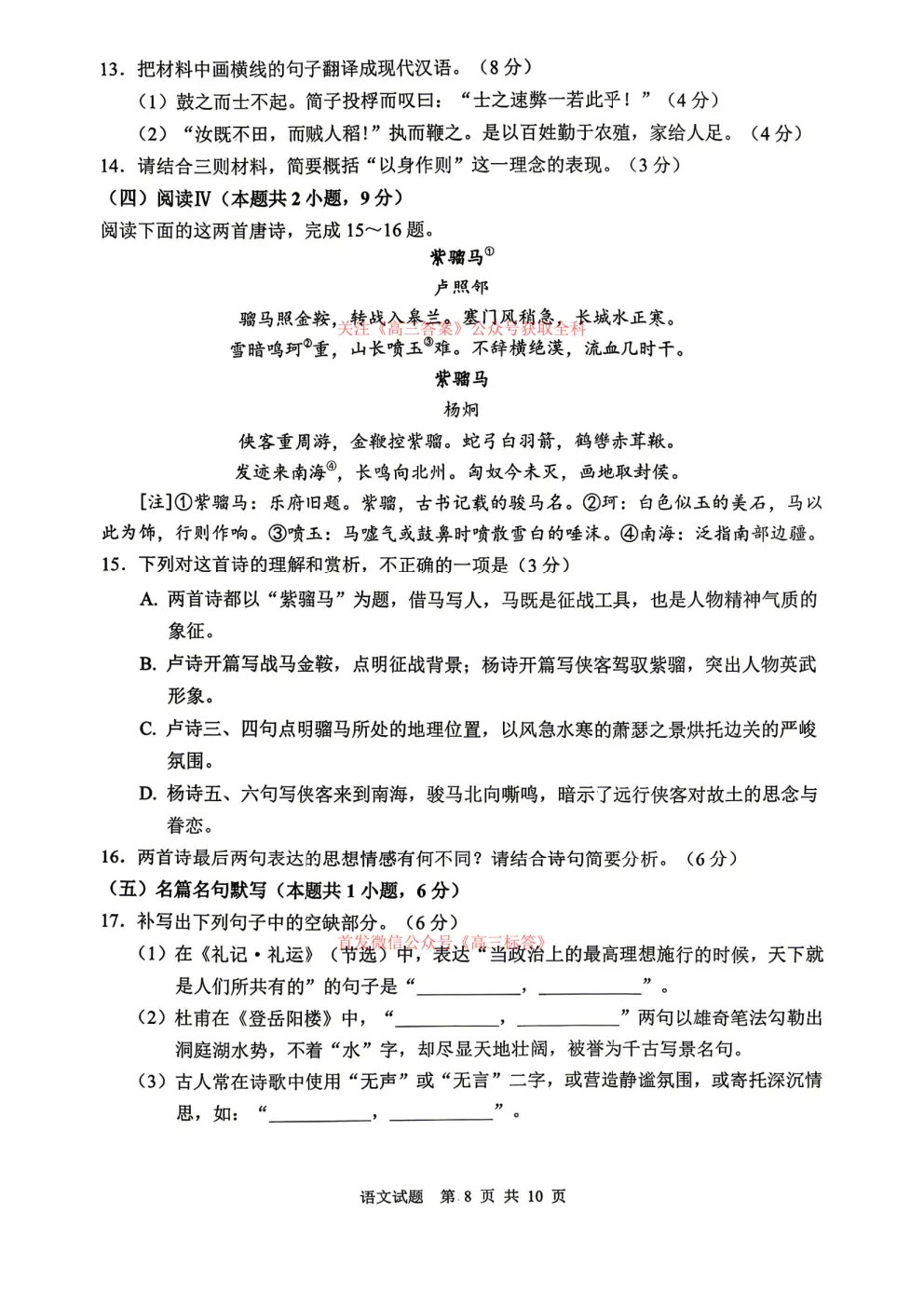 2026年全国高考冲刺压轴卷一语文、数学、英语答案 2026年全国高考冲刺压轴卷一语文、数学、英语答案