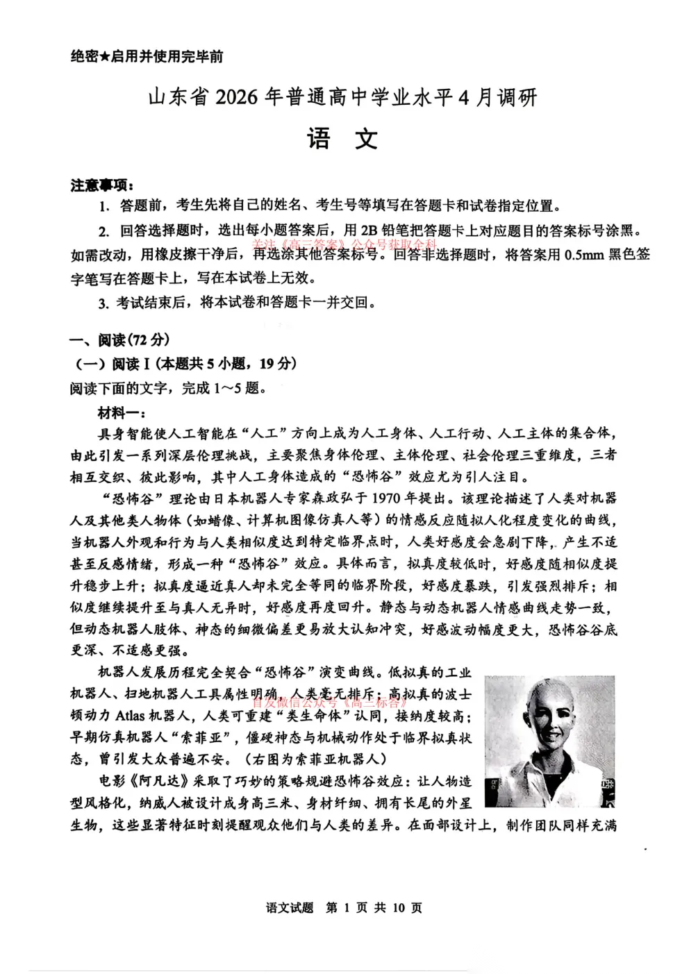 山东省2026年普通高中学业水平4月调研下载