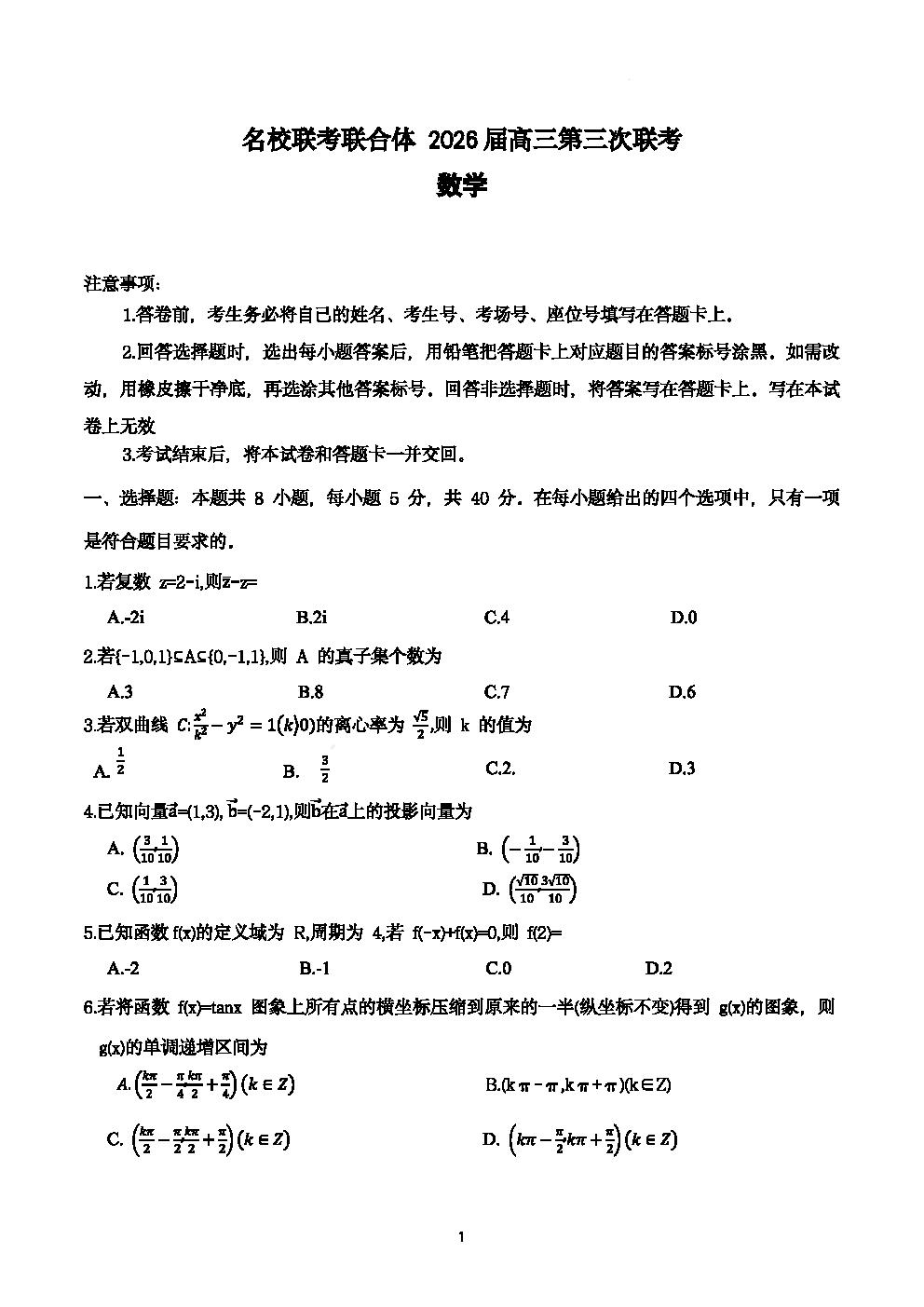 【全科】四川省南充市高2026届高考适应性考试(二诊) 【全科】四川省南充市高2026届高考适应性考试(二诊)