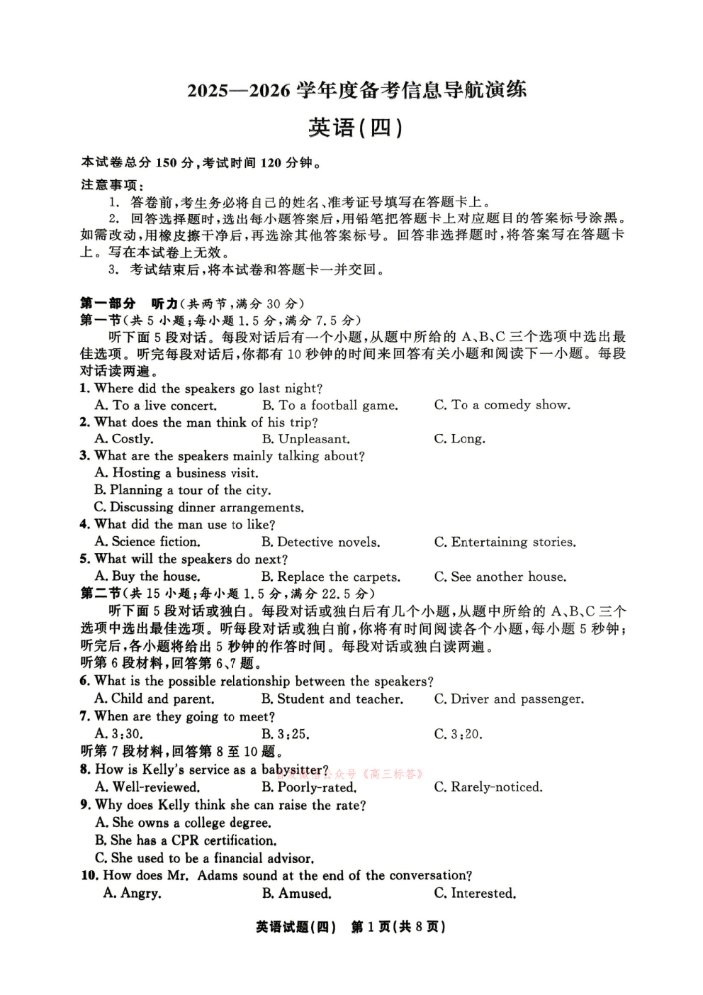 2025-2026学年度备考信息导航演练
