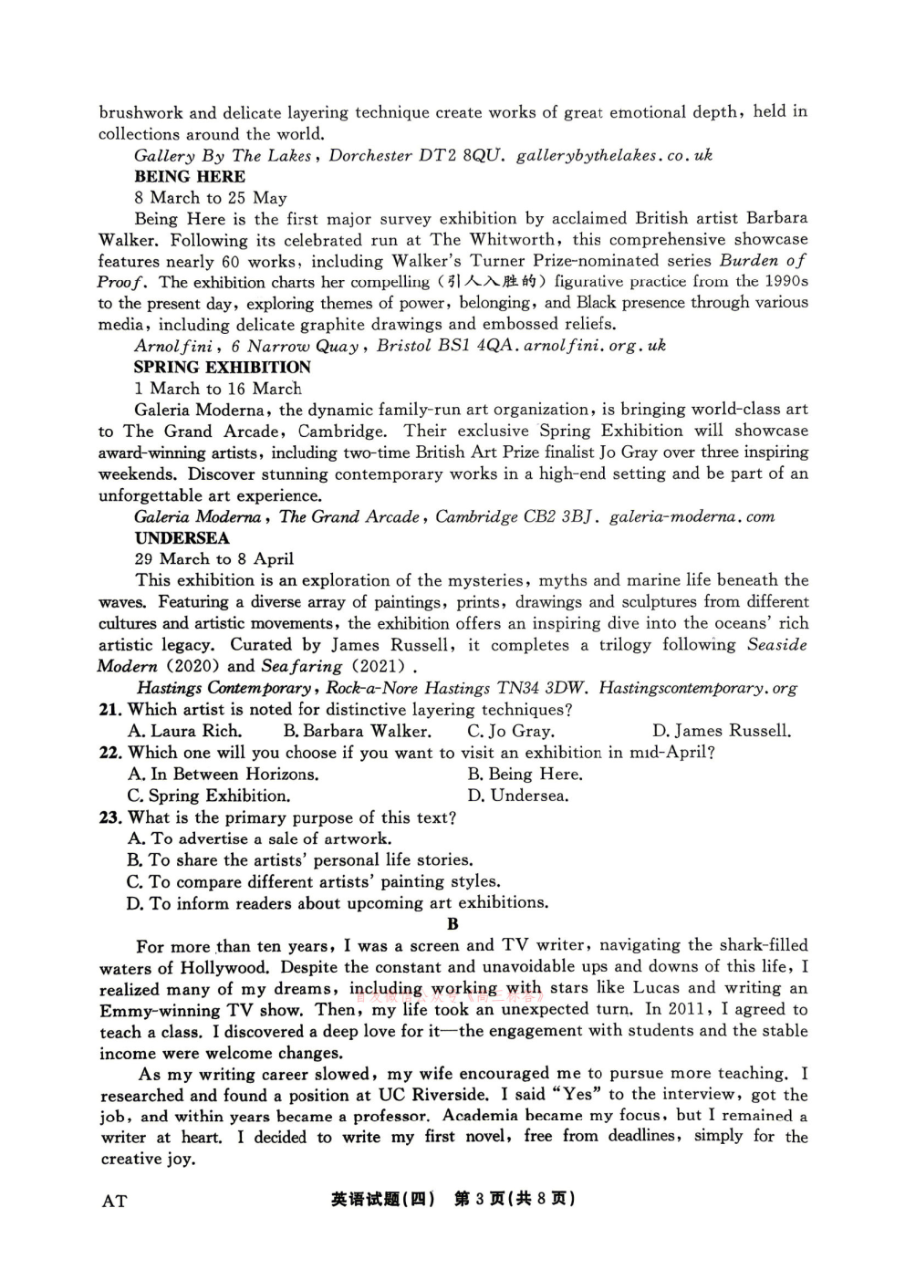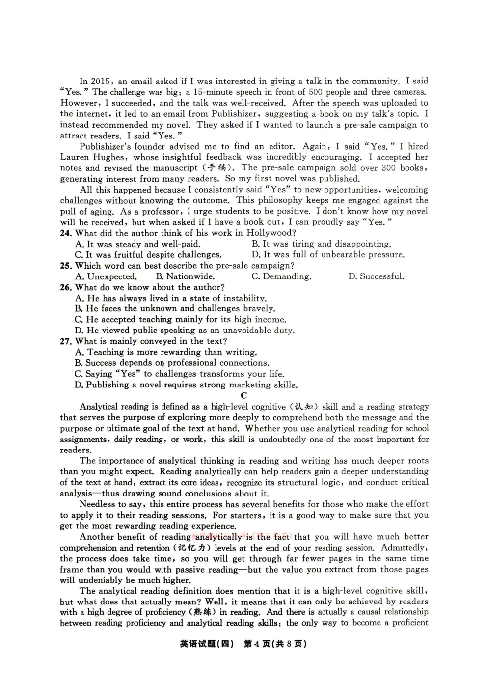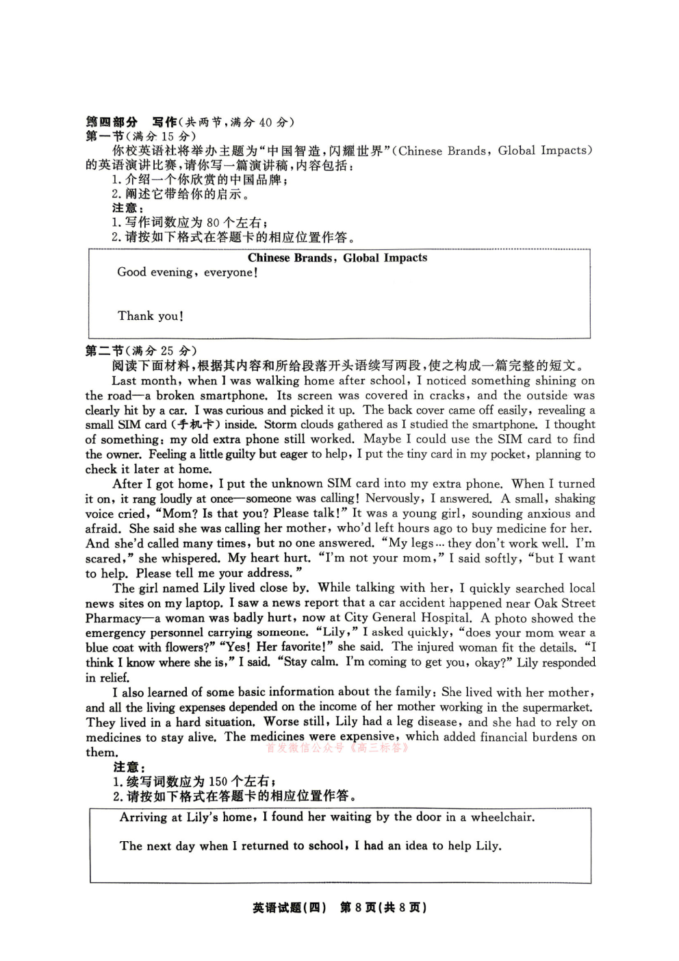 2026年全国高考冲刺压轴卷一语文、数学、英语答案 2026年全国高考冲刺压轴卷一语文、数学、英语答案