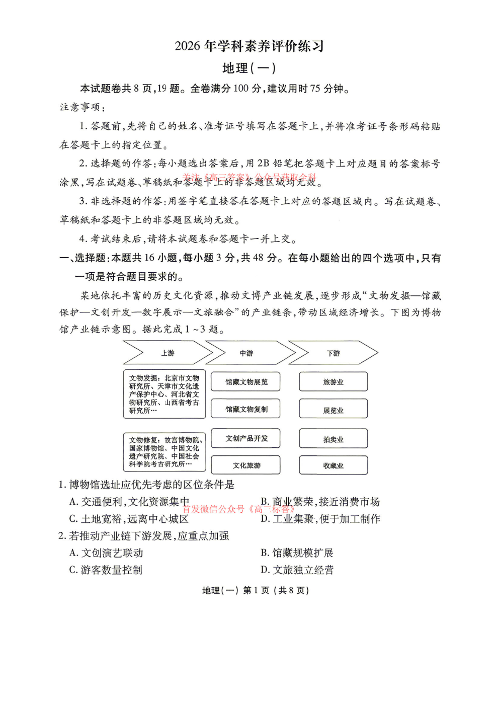 山东省2026年普通高中学业水平4月调研下载 山东省2026年普通高中学业水平4月调研下载