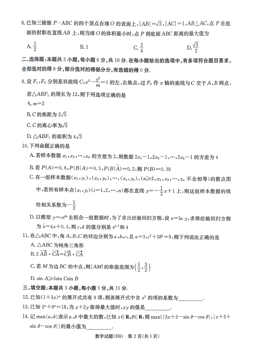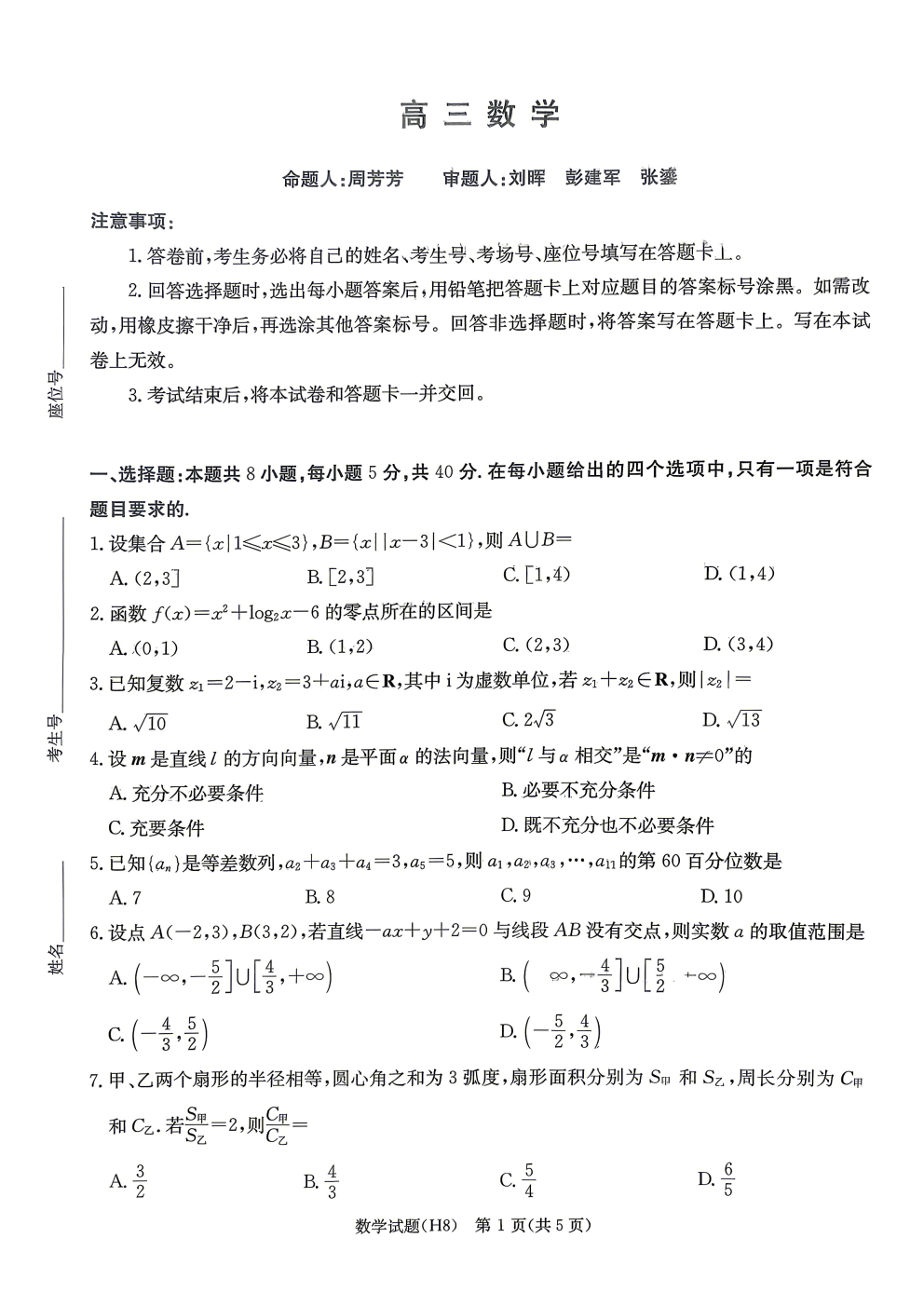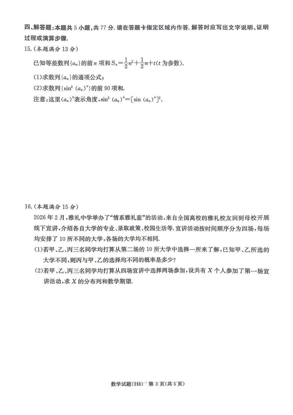 2026届山东省高三第五次学业水平联合检测答案 2026届山东省高三第五次学业水平联合检测答案