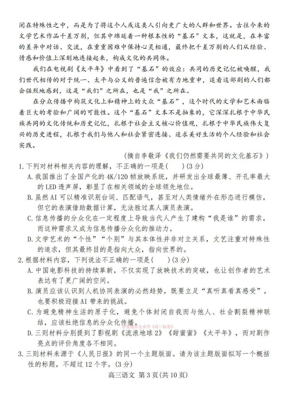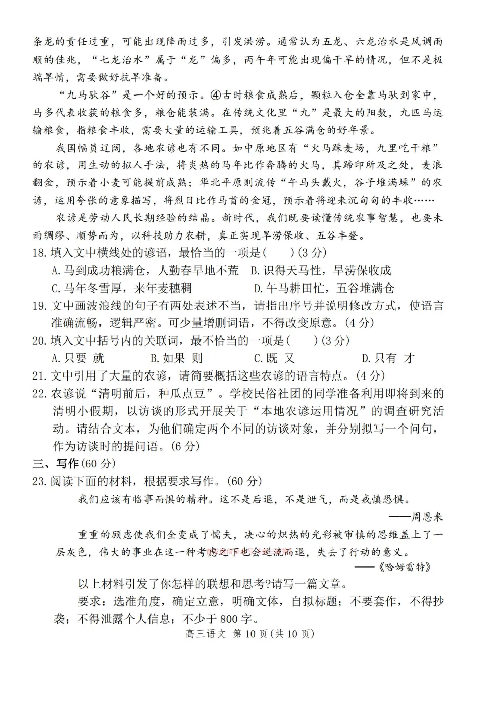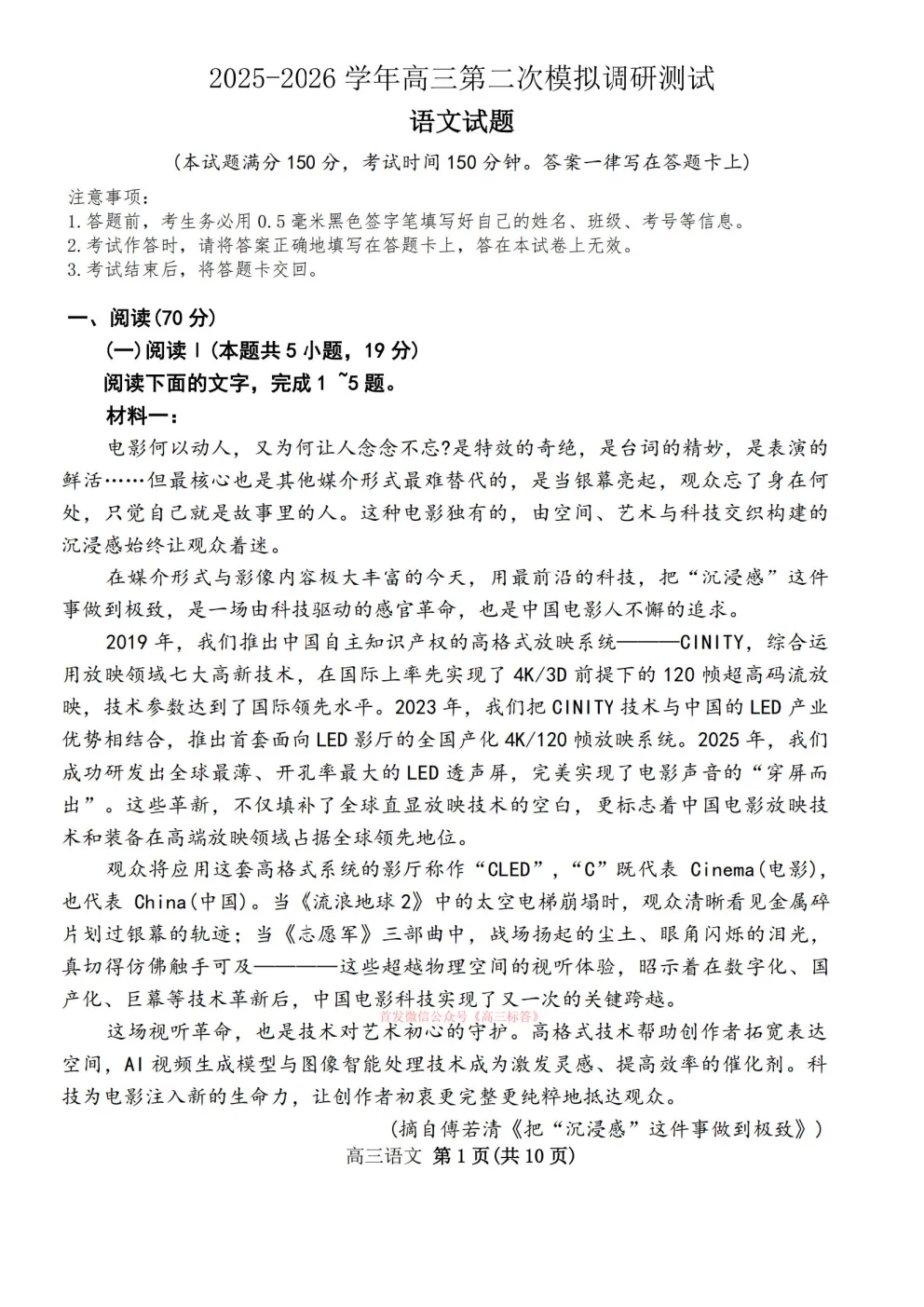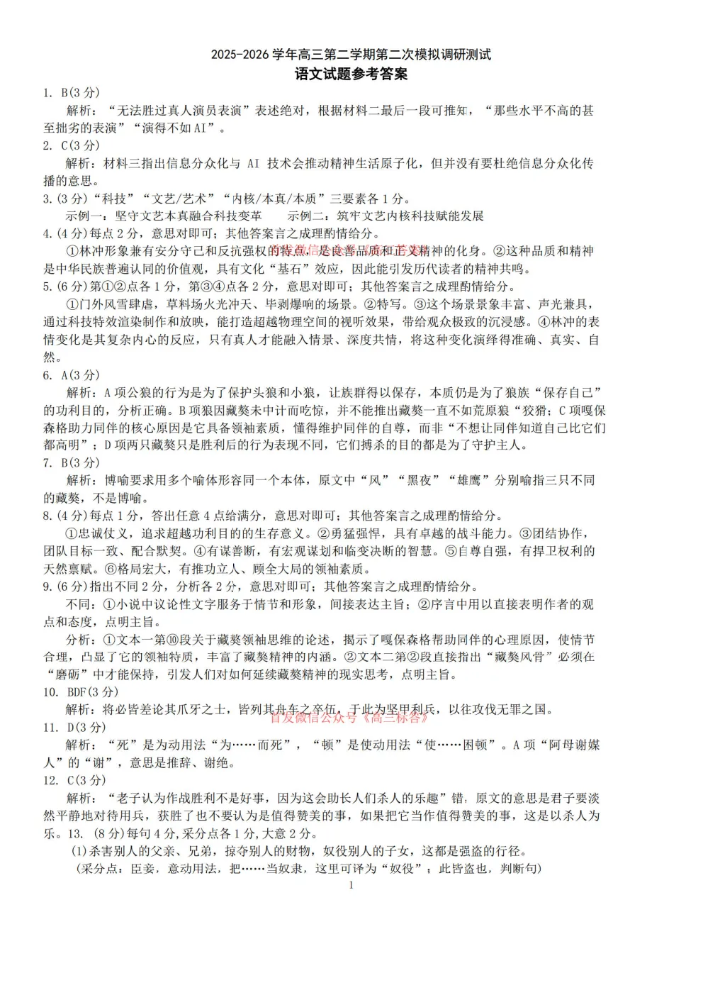 2026高考模拟冲刺预测训练一答案 2026高考模拟冲刺预测训练一答案