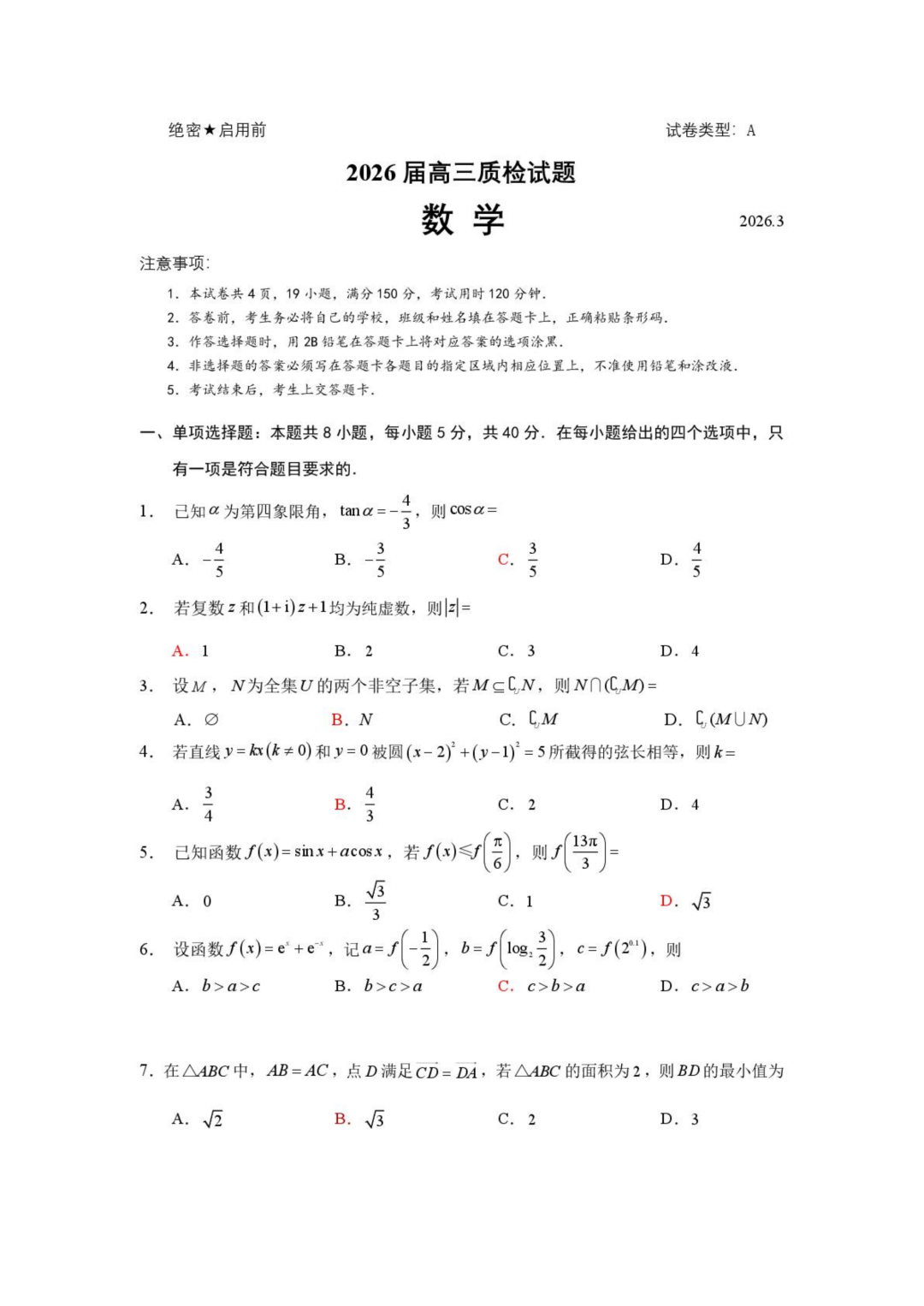 吉林地区2026届高三下第三次调研测试(吉林三调) 吉林地区2026届高三下第三次调研测试(吉林三调)