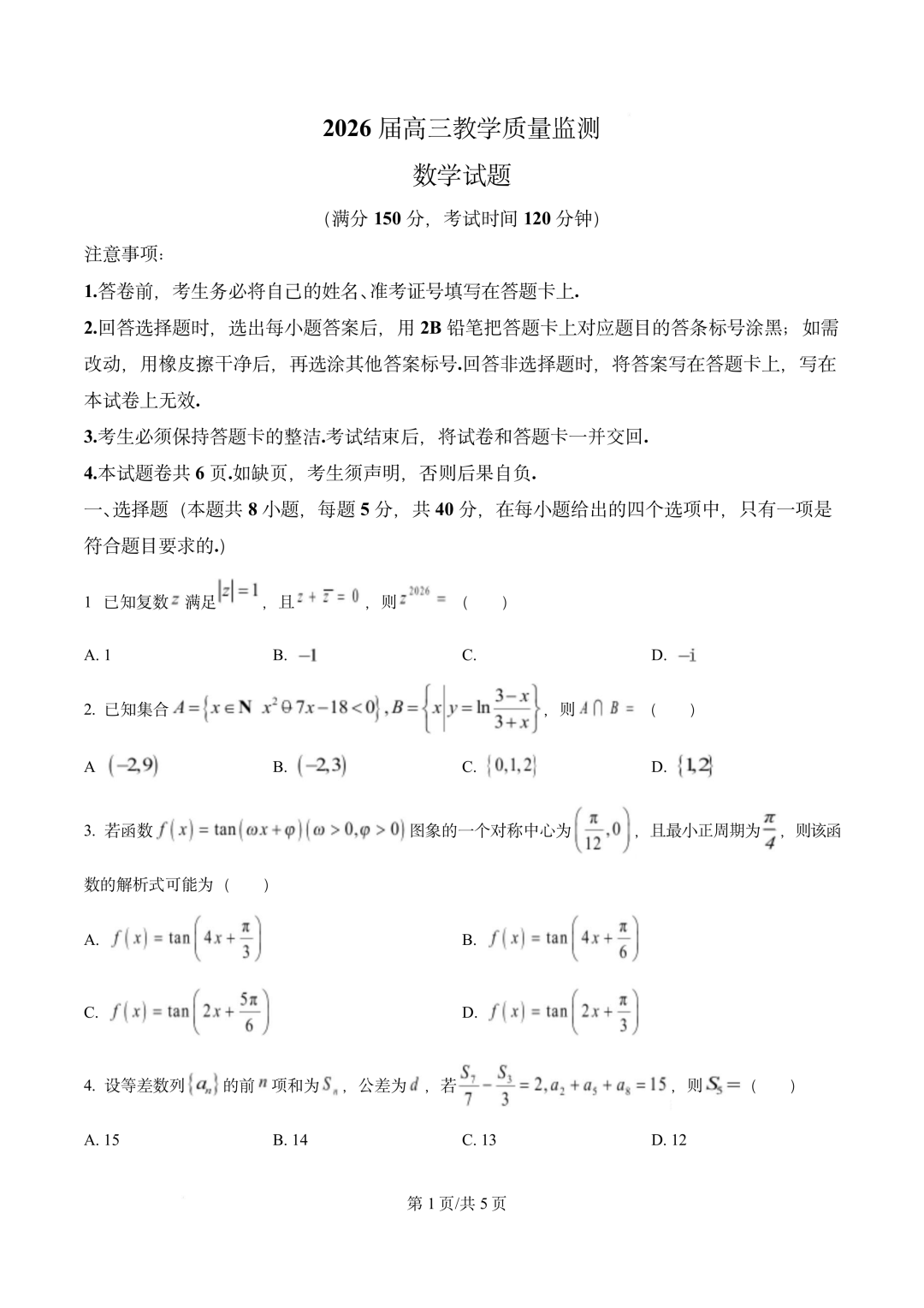 天津南开区2026届高三第二学期高三年级质量监测(一) 天津南开区2026届高三第二学期高三年级质量监测(一)