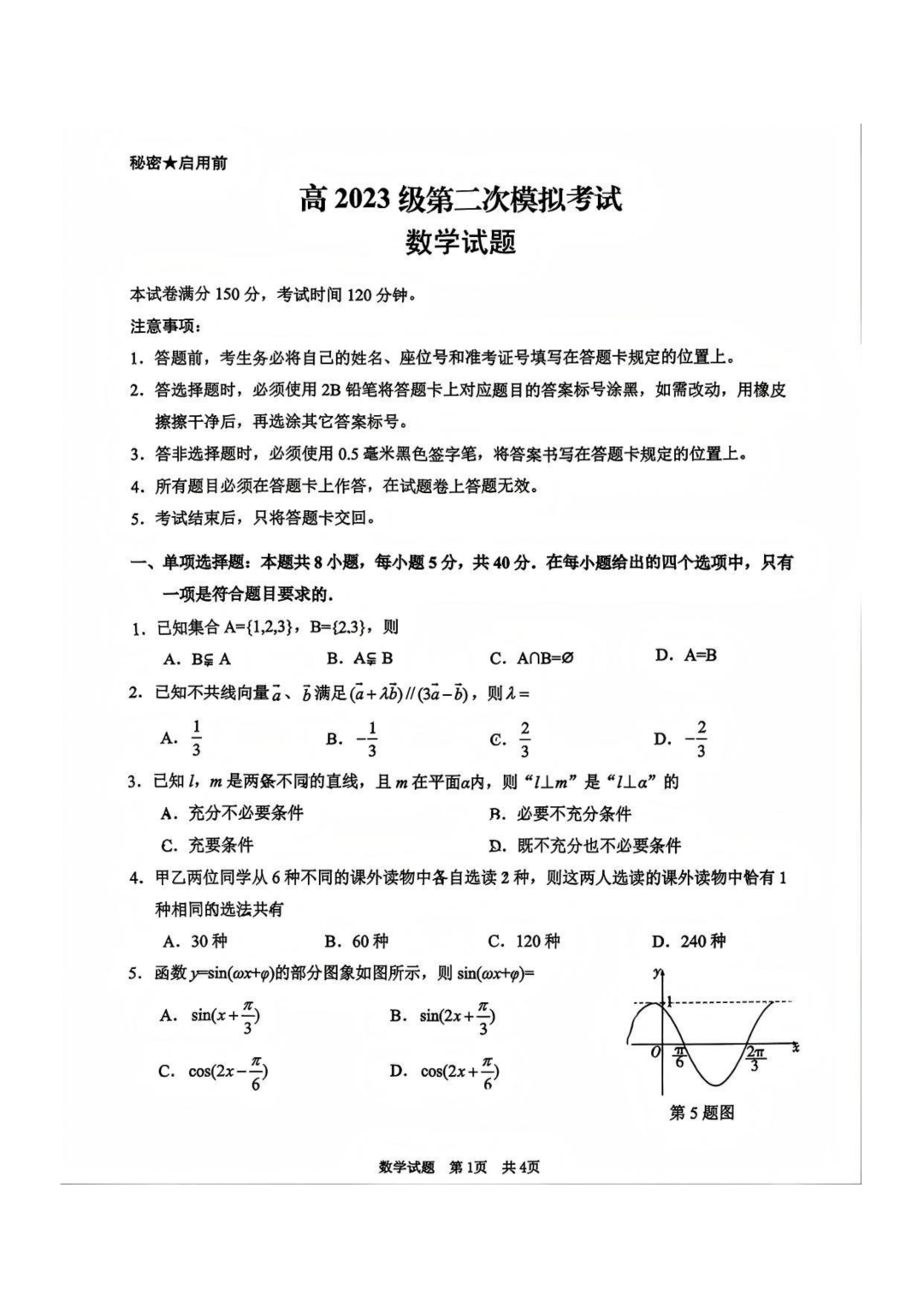 四川省广安市2023级高三下学期3月第二次模拟考试(广安二诊)