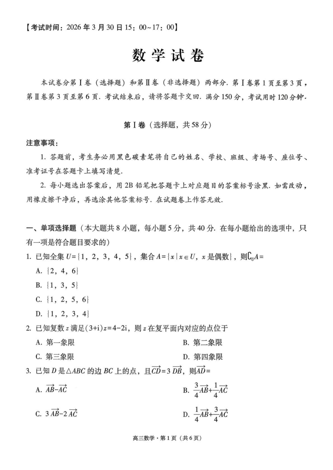湖南省郴州市2026届高三下学期3月教学质量监测 湖南省郴州市2026届高三下学期3月教学质量监测