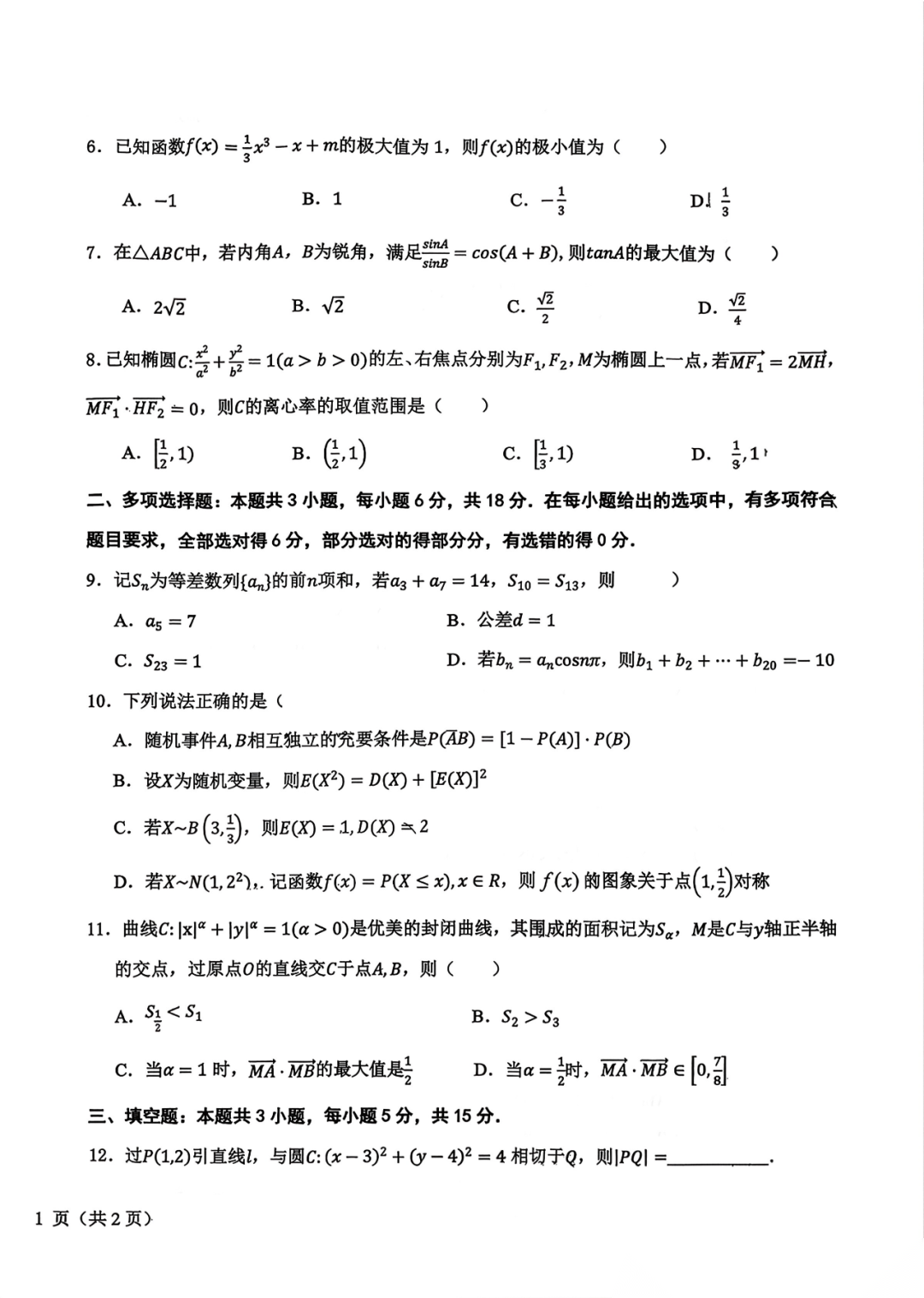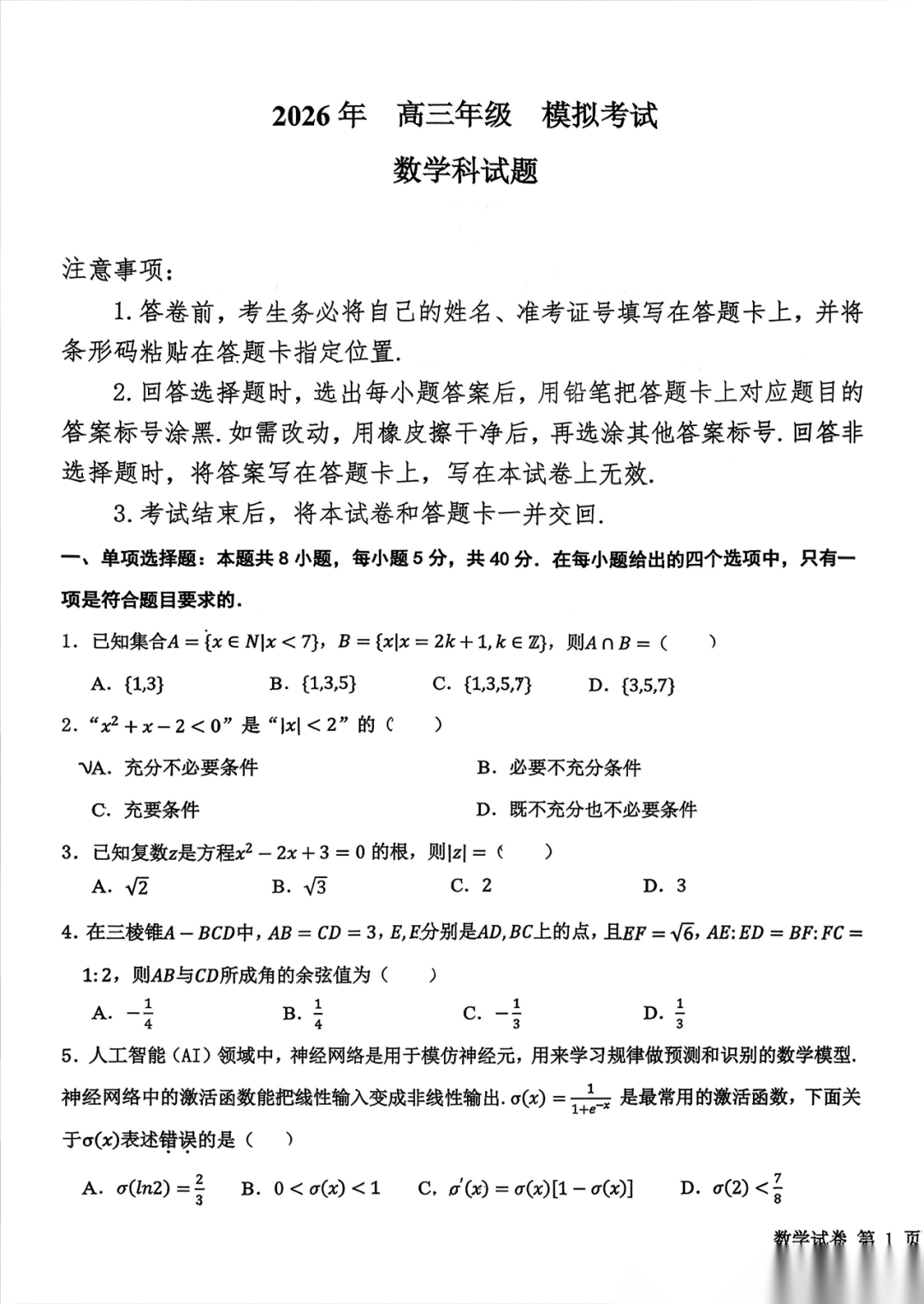 四川省南充市高2026届高三3月高考适应性考试(南充二诊) 四川省南充市高2026届高三3月高考适应性考试(南充二诊)
