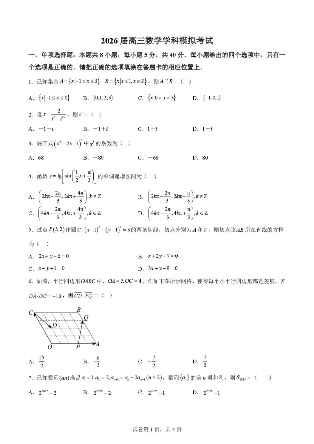 四川省南充市高2026届高三3月高考适应性考试(南充二诊) 四川省南充市高2026届高三3月高考适应性考试(南充二诊)