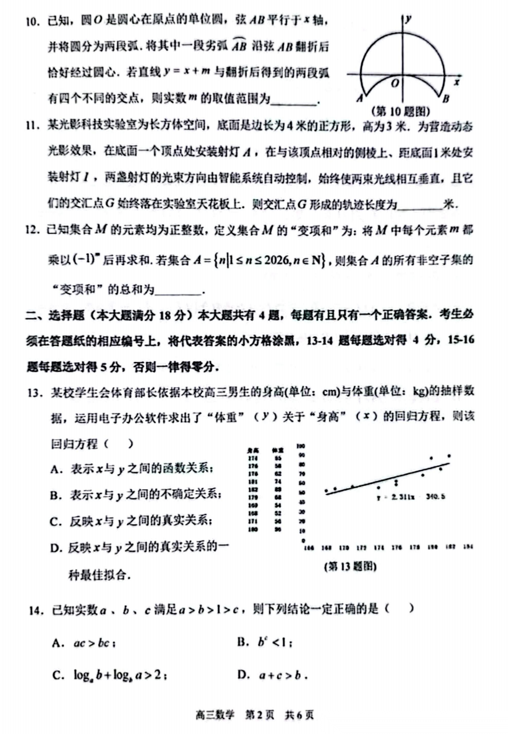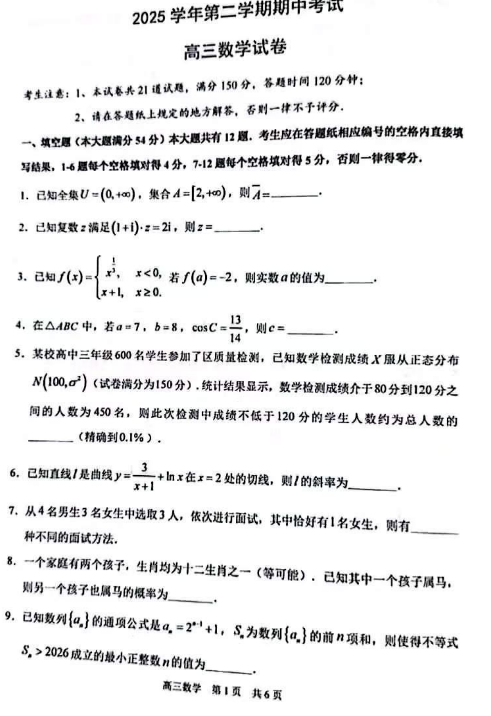 【上海卷】上海市浦东新区2026届高三年级2025学年第二学期期中考试暨二模考试(浦东二模)(4.1-4.3)) 全科试题卷+答案