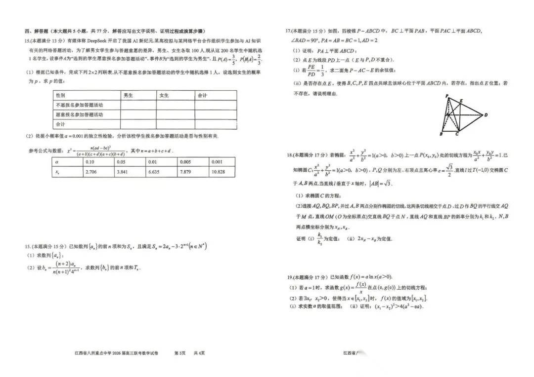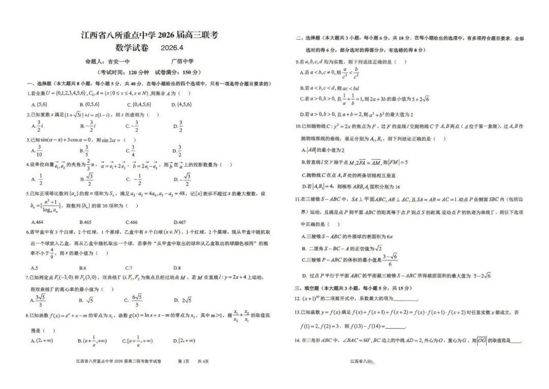 【全科】江西省八所重点中学(九江一中、宜春中学、临川一中、南昌二中等)2026届高三4月联考