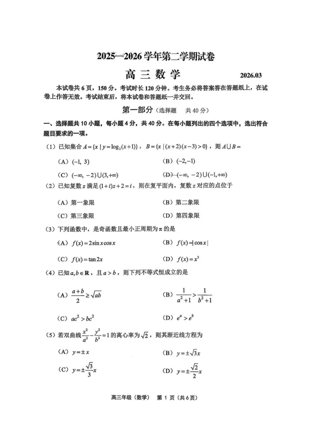 【全科】北京市延庆区2026届第二学期高三一模