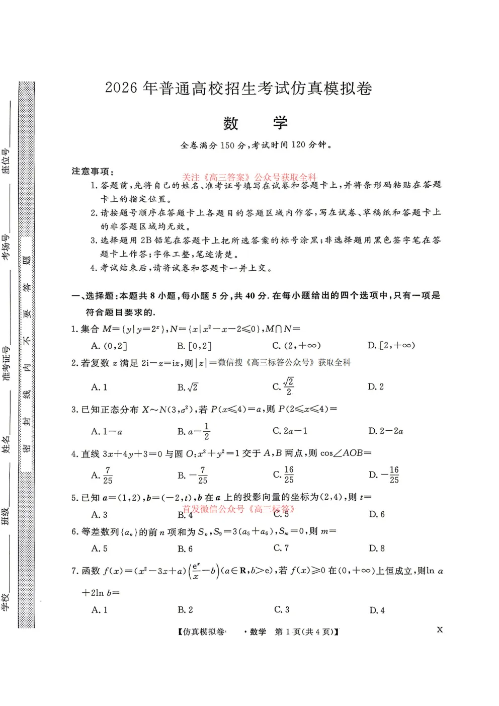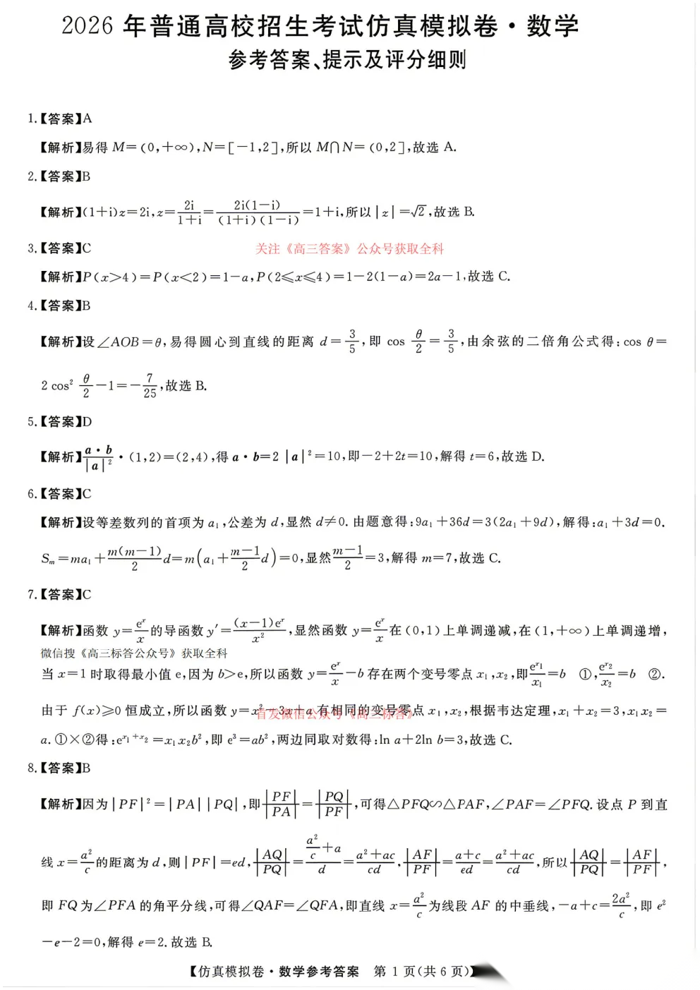 辽宁省名校联盟2026年高考模拟卷(信息卷)1-5答案 辽宁省名校联盟2026年高考模拟卷(信息卷)1-5答案