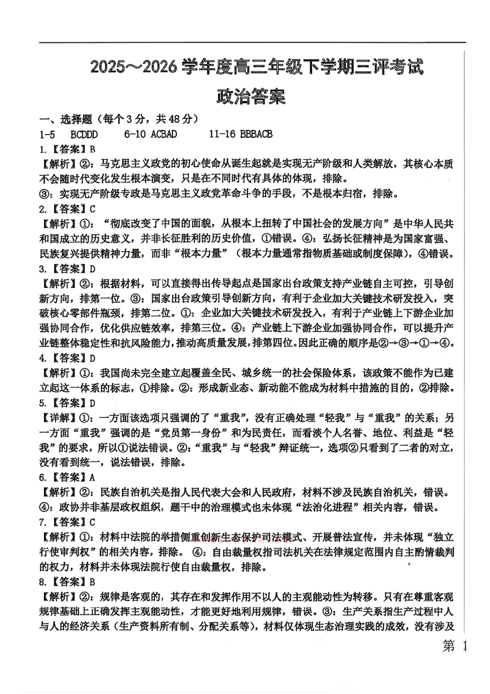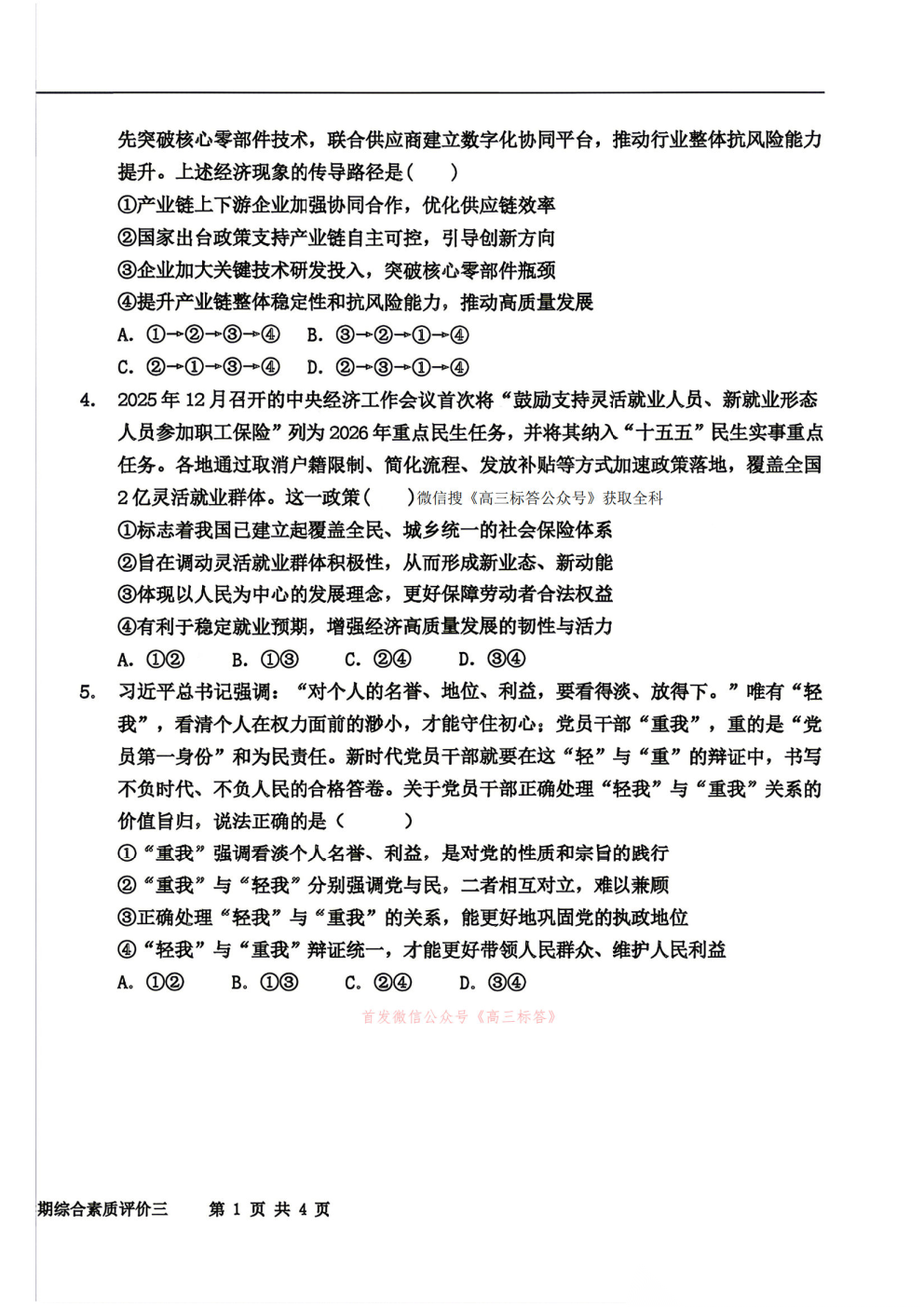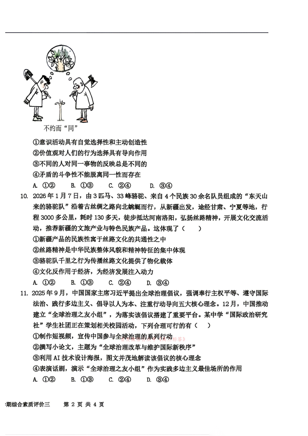 衡水中学2025-2026学年度高三年级下学期综合素质评价三答案