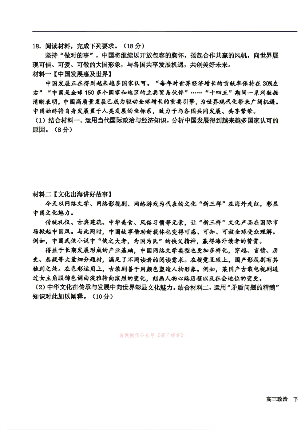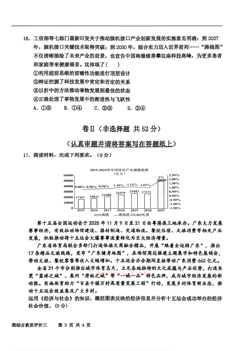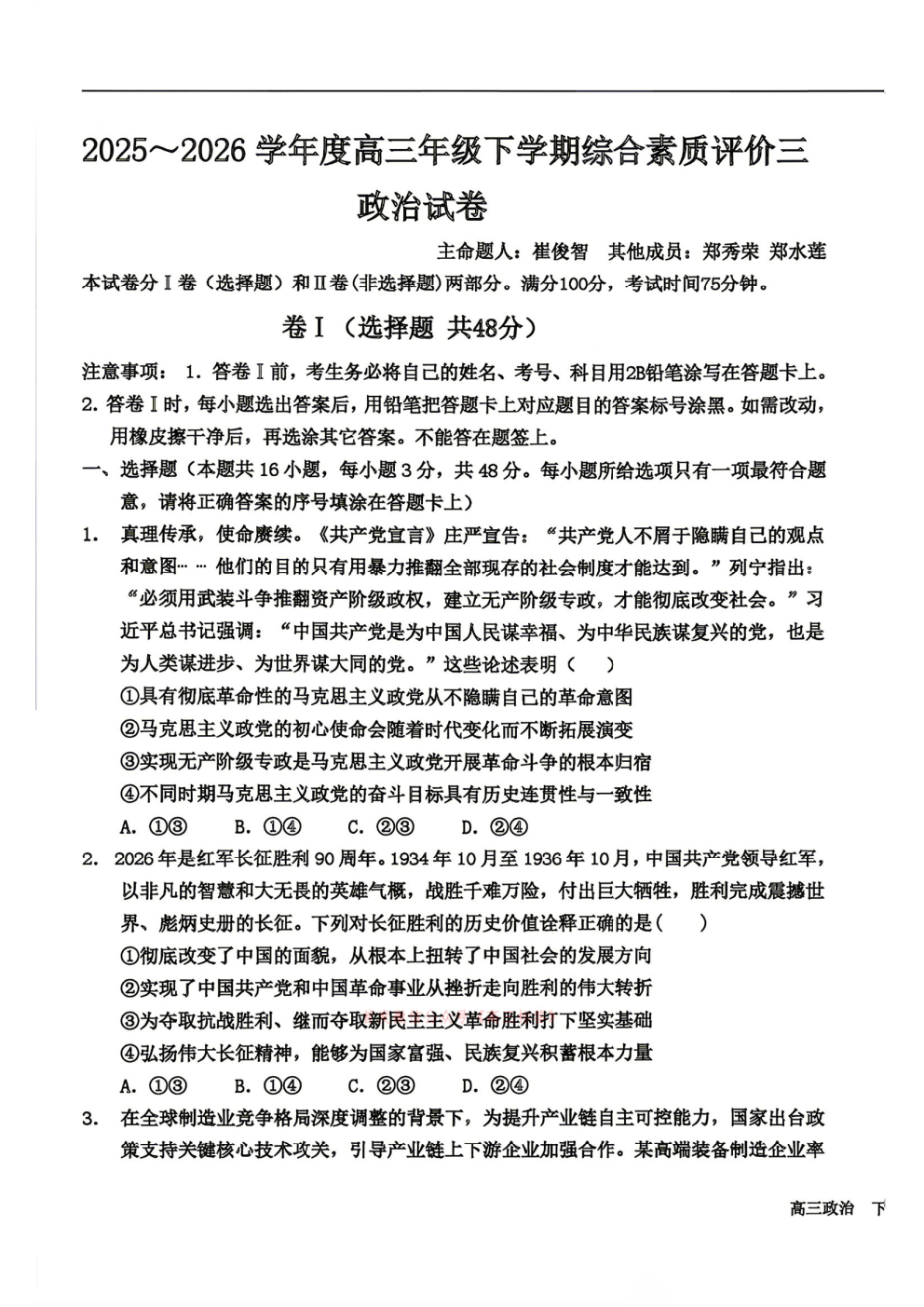 衡水中学2025-2026学年度高三年级下学期综合素质评价三答案