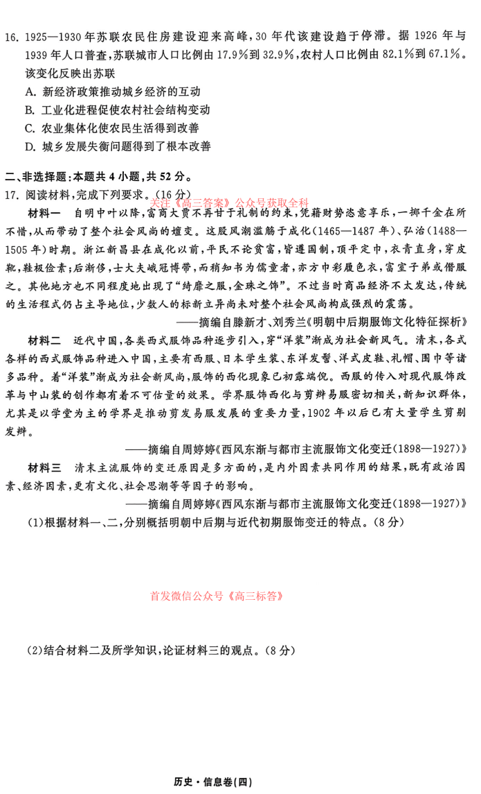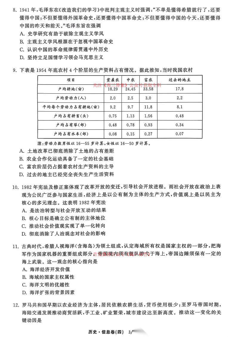 衡水中学2025-2026学年度高三年级下学期综合素质评价三答案 衡水中学2025-2026学年度高三年级下学期综合素质评价三答案