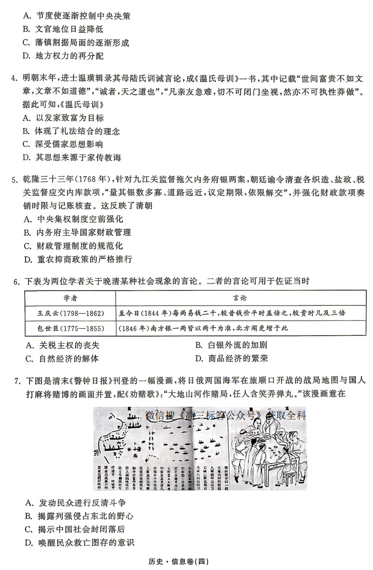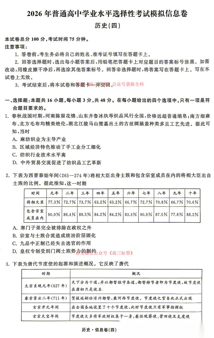 2026年普通高中学业水平选择性考试模拟信息卷四
