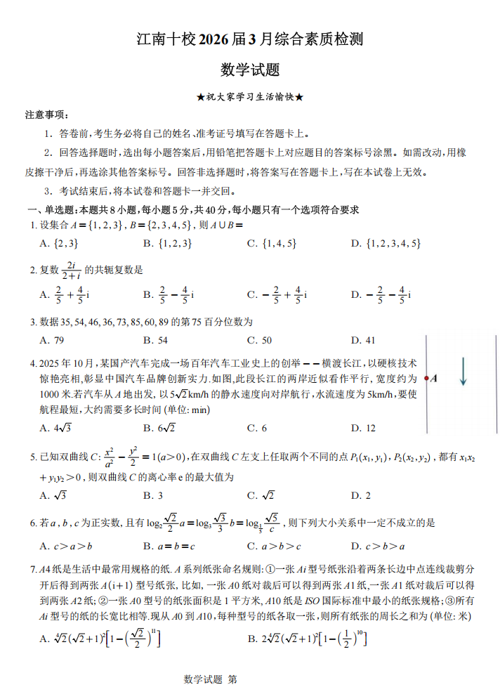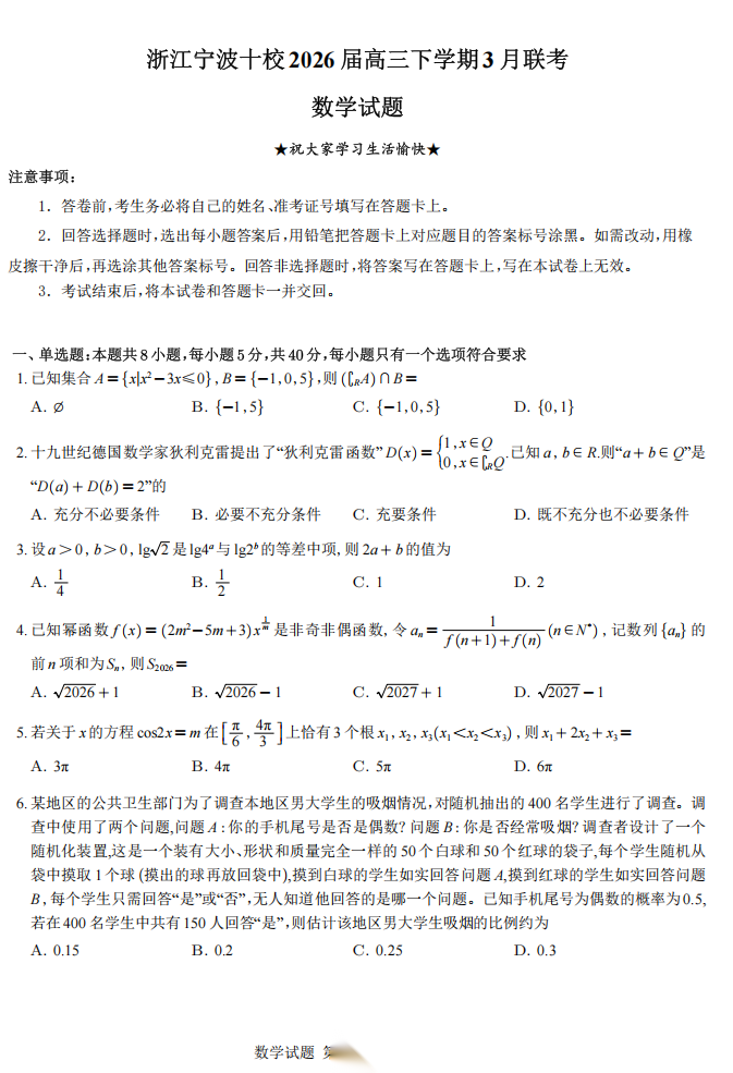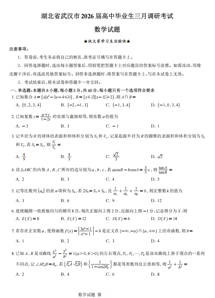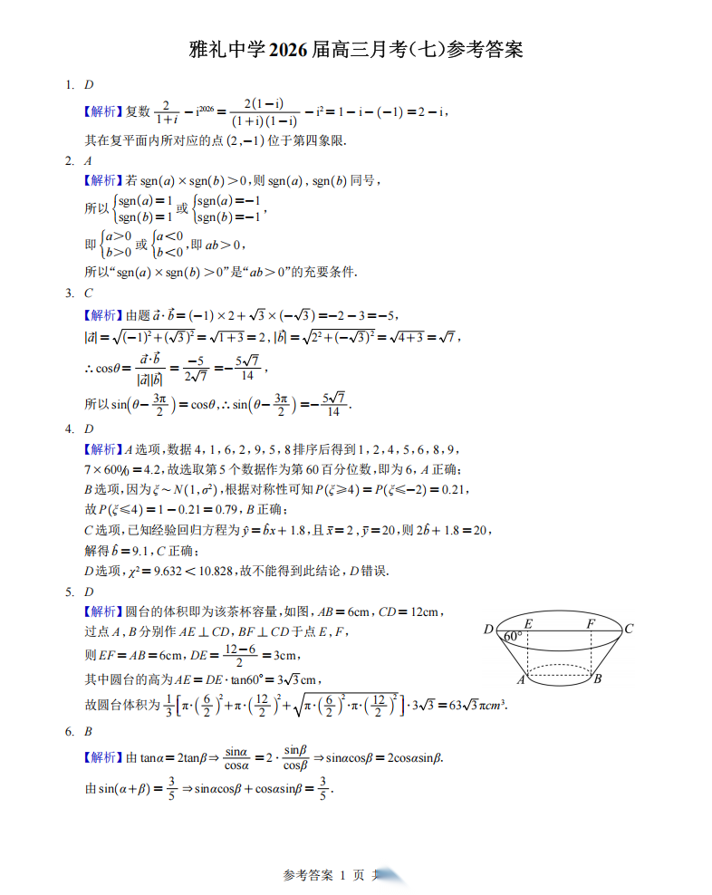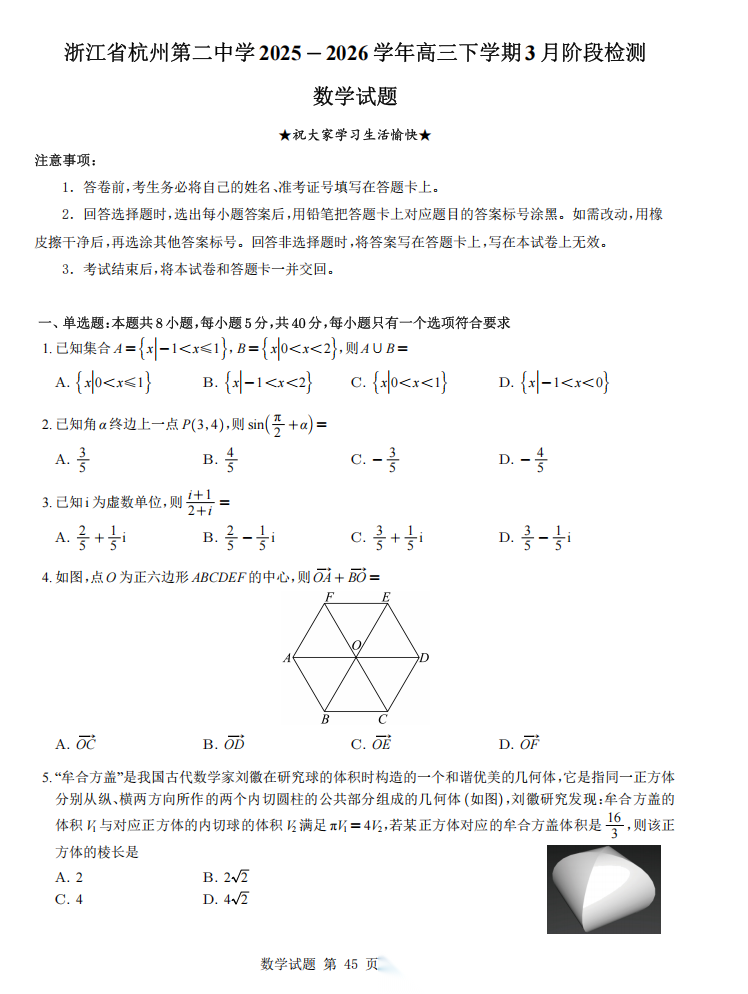 衡水中学2025-2026学年度高三年级下学期综合素质评价三答案 衡水中学2025-2026学年度高三年级下学期综合素质评价三答案