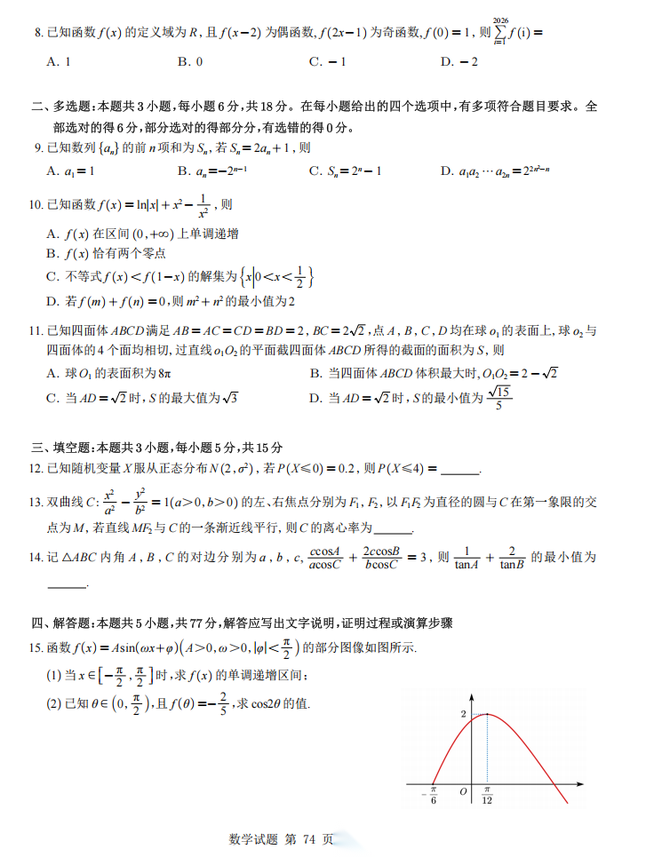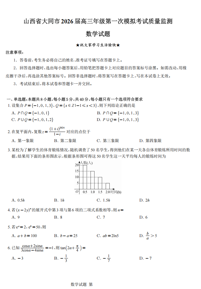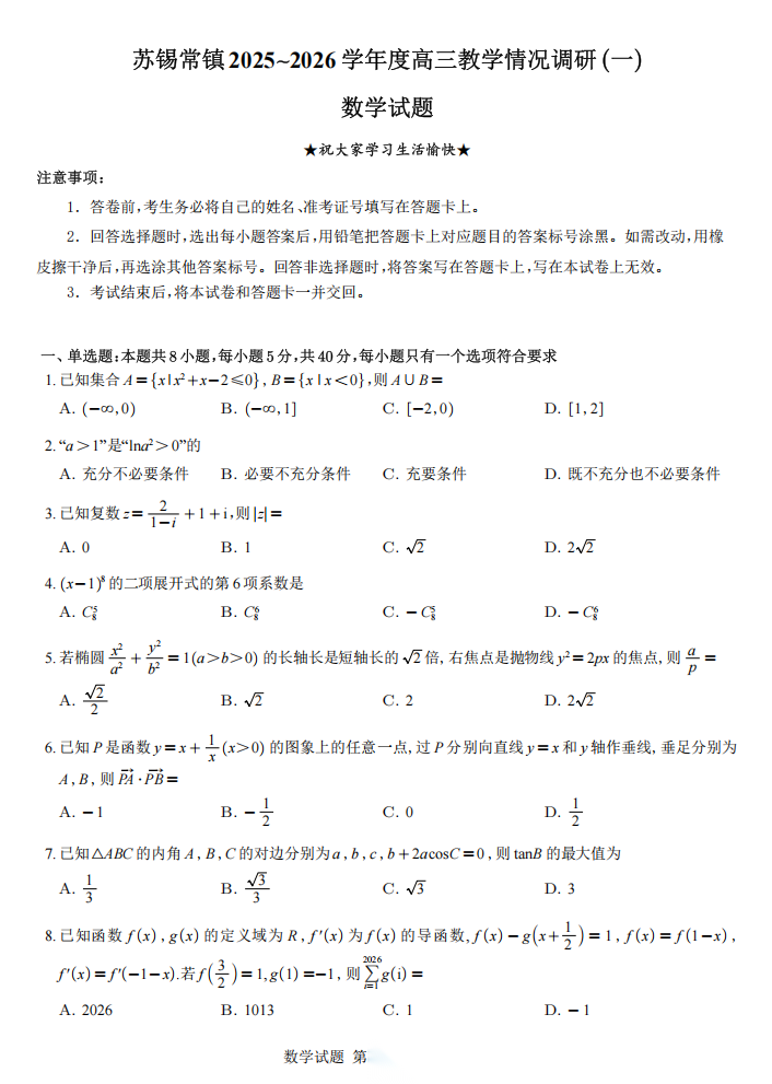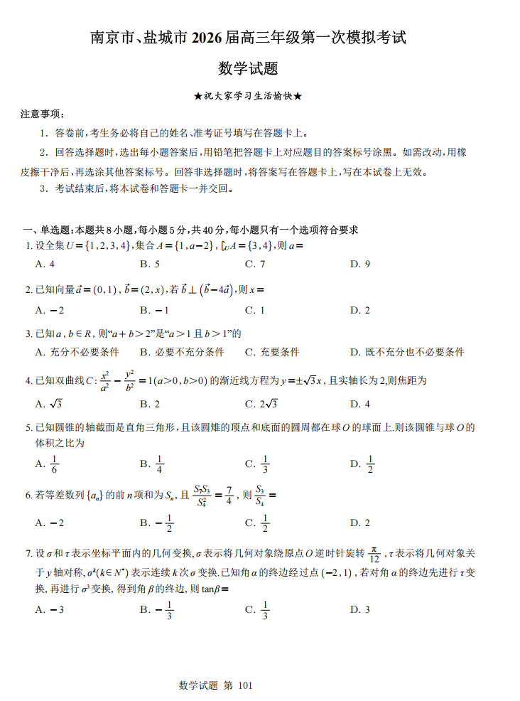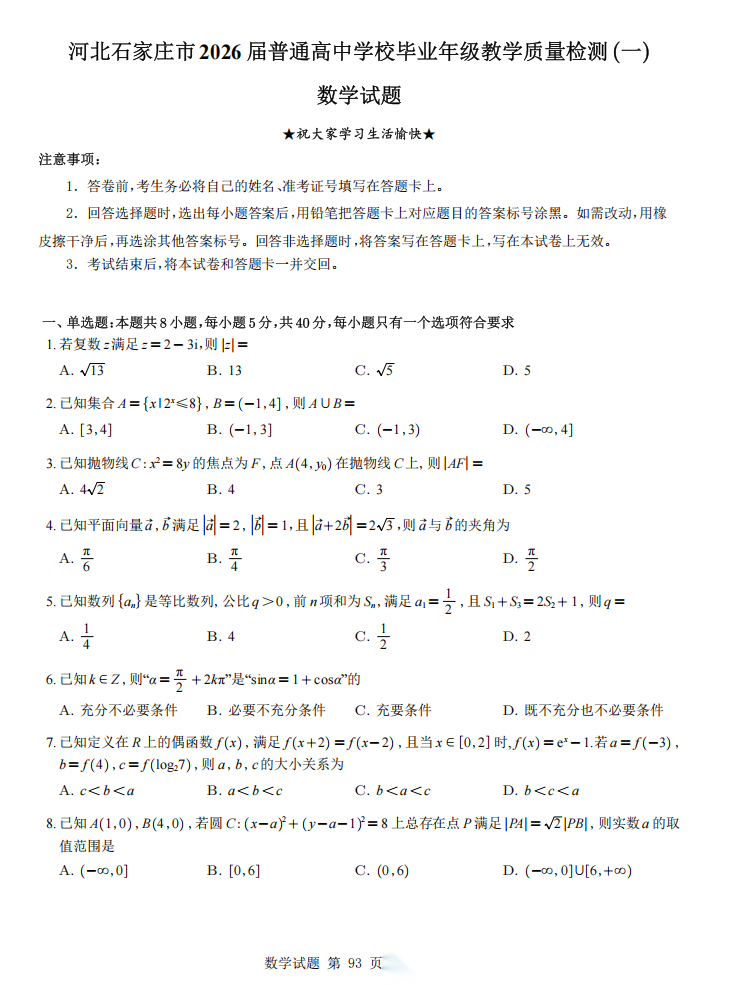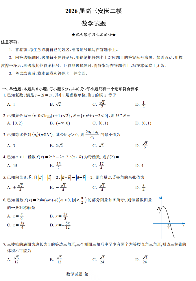 衡水中学2025-2026学年度高三年级下学期综合素质评价三答案 衡水中学2025-2026学年度高三年级下学期综合素质评价三答案