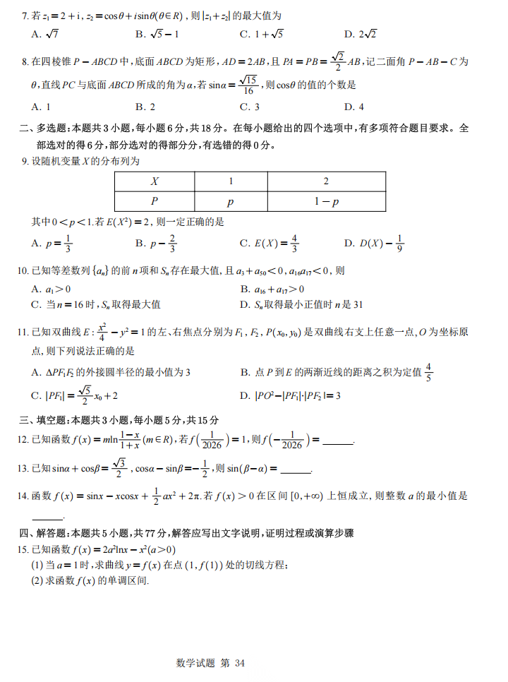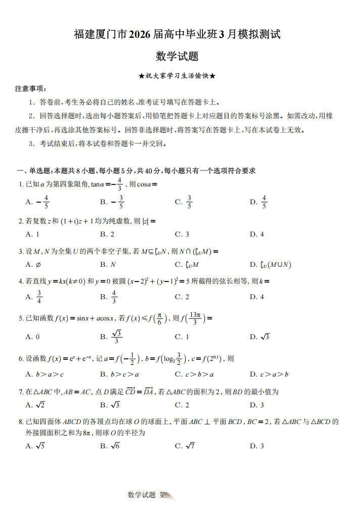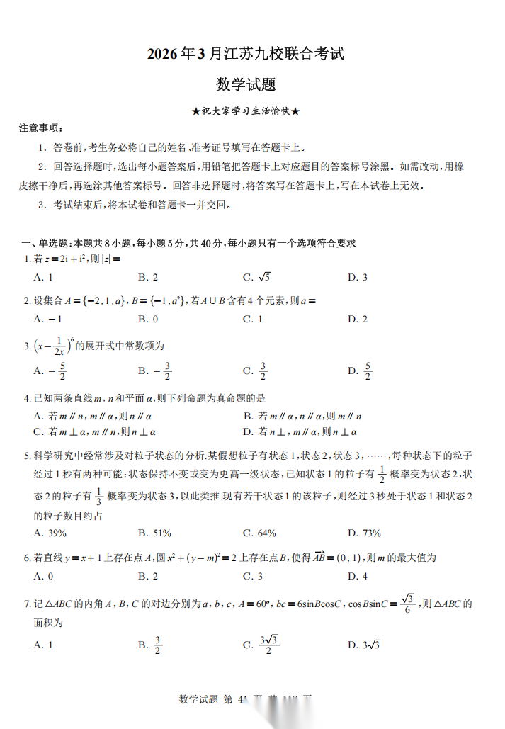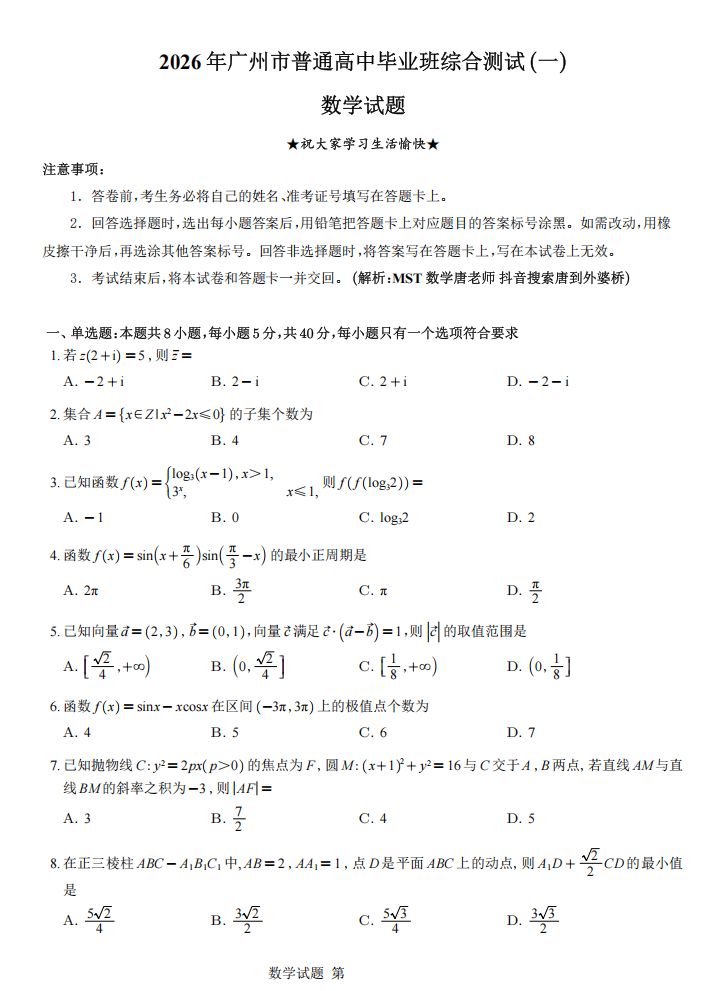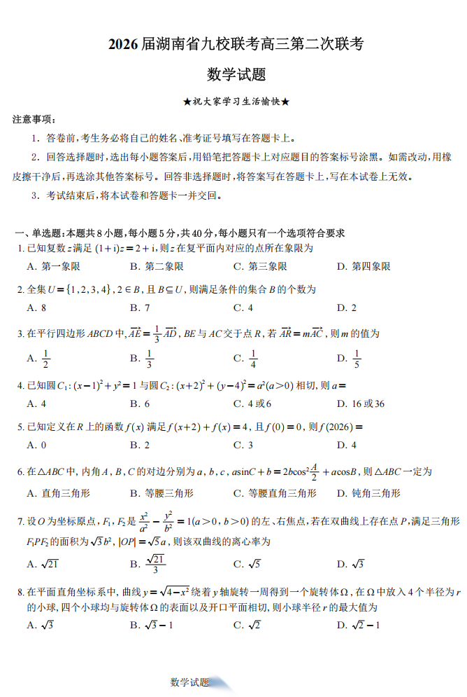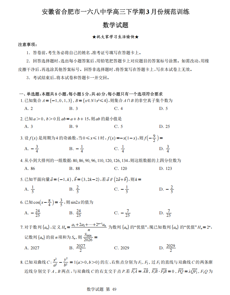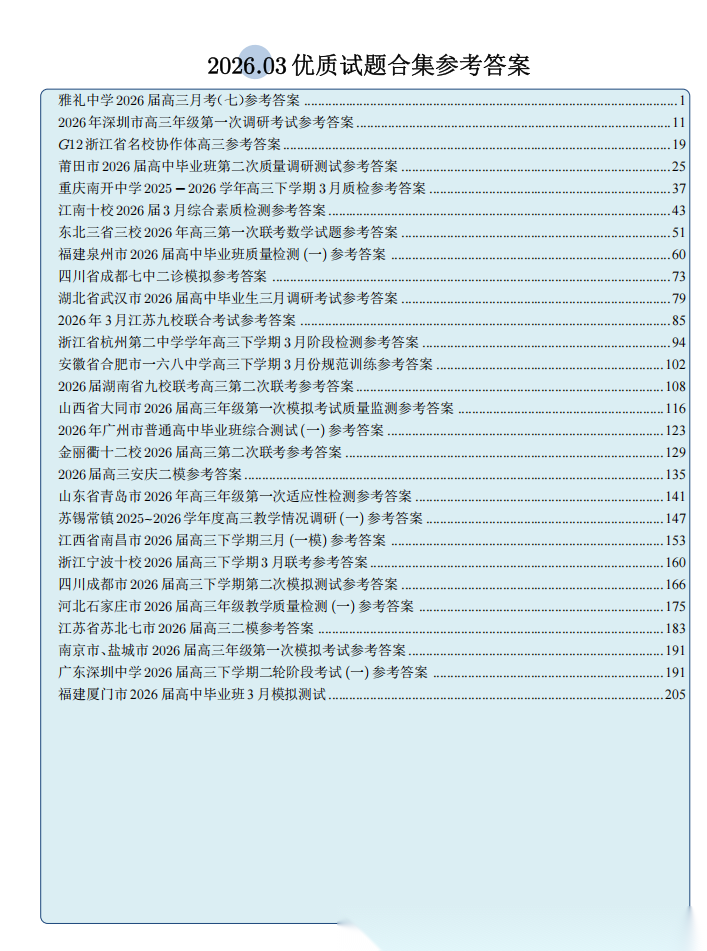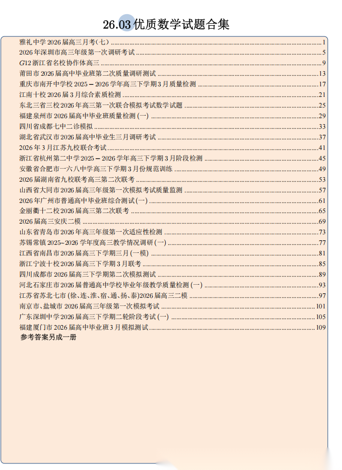 【独家分享】【3月数学合集】2026年3月份(3.1-3.31)全国各省市高三年级模考联考优质数学试题合集(共28套)试题册+答案解析册(完整版)