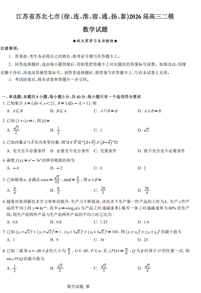 【三次补齐重发】【山东卷】山东省山东中学联盟2026届高三年级普通高中学业水平4月调研考试(4.1-4.2)全科试题卷+答案(这次真全了) 【三次补齐重发】【山东卷】山东省山东中学联盟2026届高三年级普通高中学业水平4月调研考试(4.1-4.2)全科试题卷+...