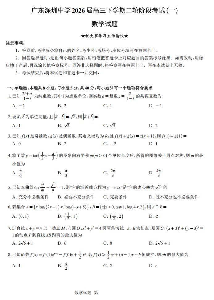 衡水金卷2026年学科素养评价练习二 衡水金卷2026年学科素养评价练习二