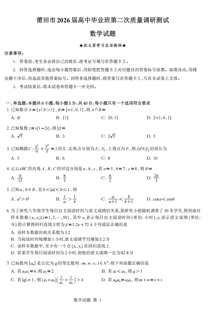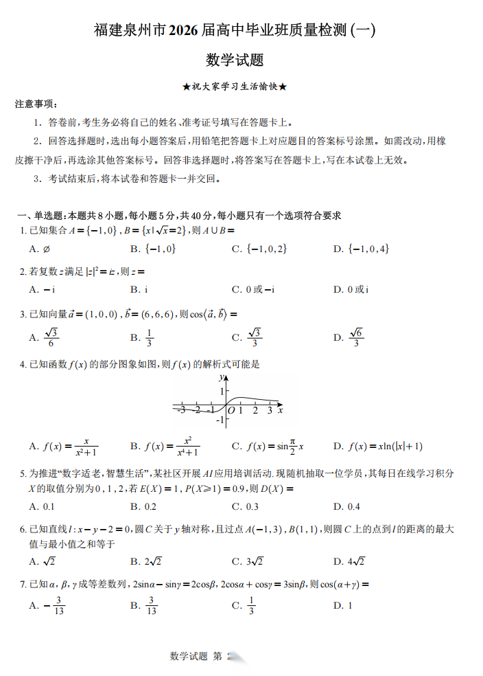 【云南卷】云南省玉溪市第一中学2025—2026学年下学期高三年级适应性测试(一)(玉溪一中一模)(3.20-3.21) 全科试题卷(缺化学)+答案 【云南卷】云南省玉溪市第一中学2025—2026学年下学期高三年级适应性测试(一)(玉溪一中一模)(3.20-3.21)...