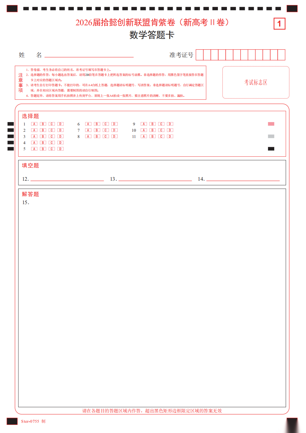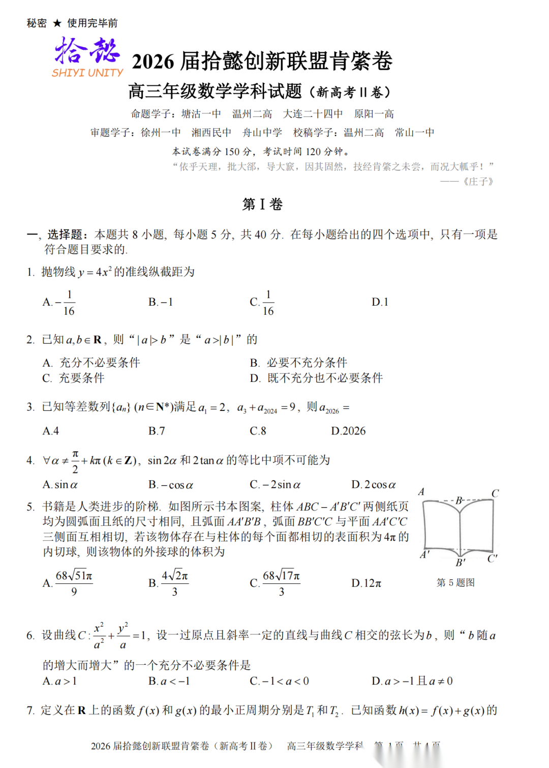 【新高考II卷】【线上联考】【拾懿创新联考】2026 届拾懿创新联盟肯綮卷(4月5日16点-17点) 数学试题卷+答题卡