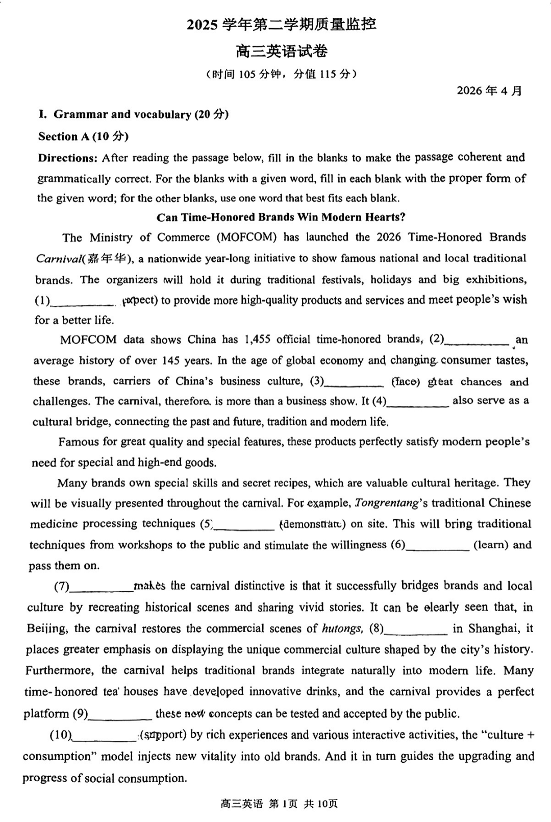 【云南卷】云南省玉溪市第一中学2025—2026学年下学期高三年级适应性测试(一)(玉溪一中一模)(3.20-3.21) 全科试题卷(缺化学)+答案 【云南卷】云南省玉溪市第一中学2025—2026学年下学期高三年级适应性测试(一)(玉溪一中一模)(3.20-3.21)...