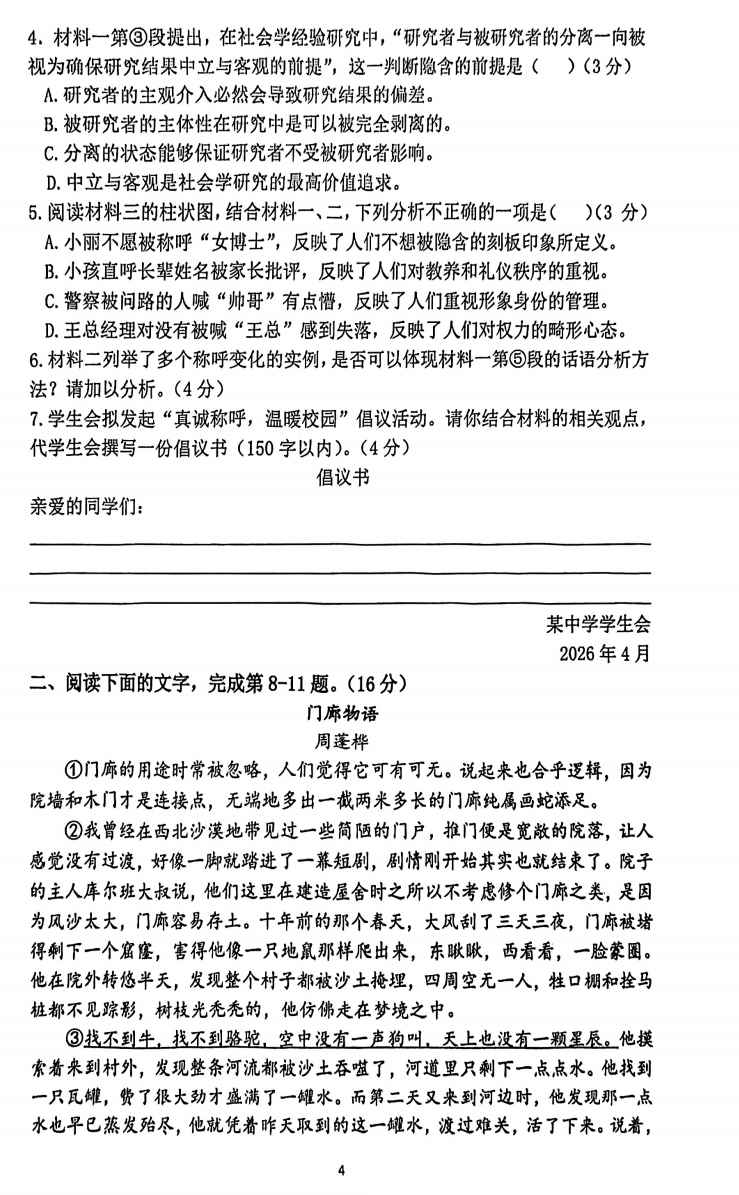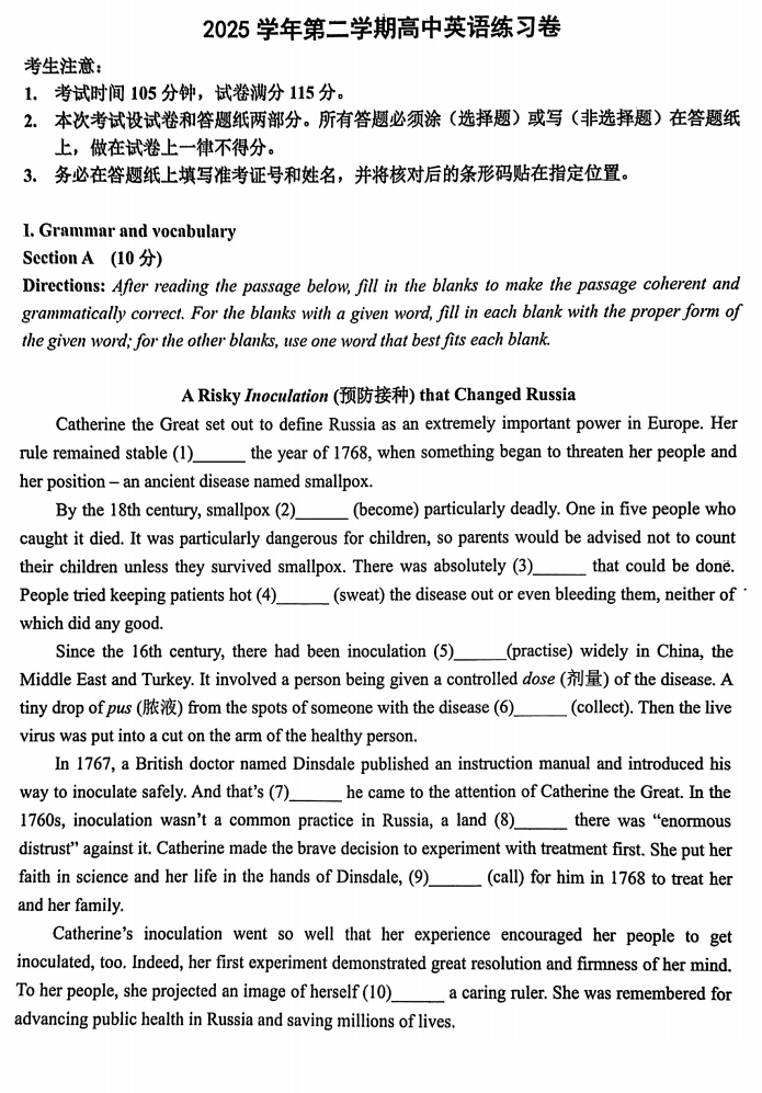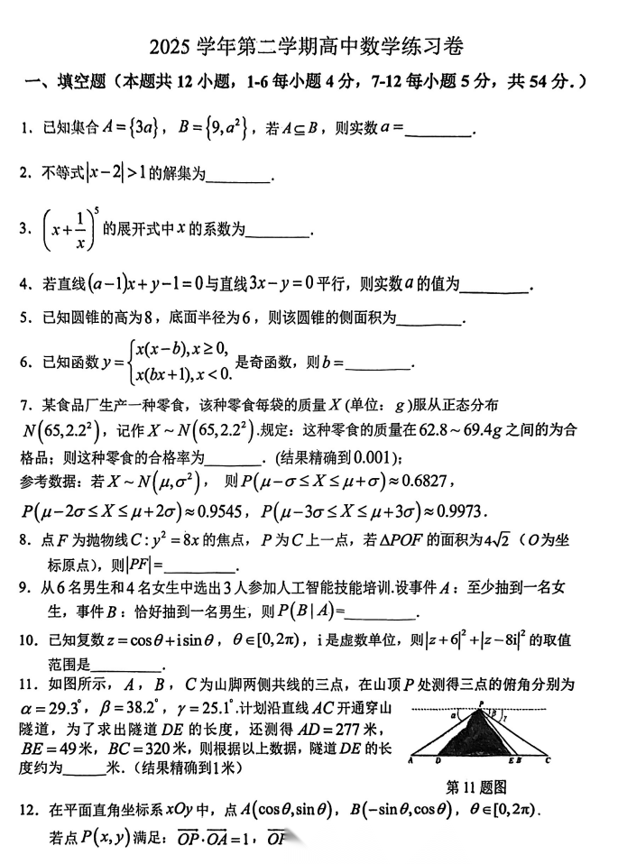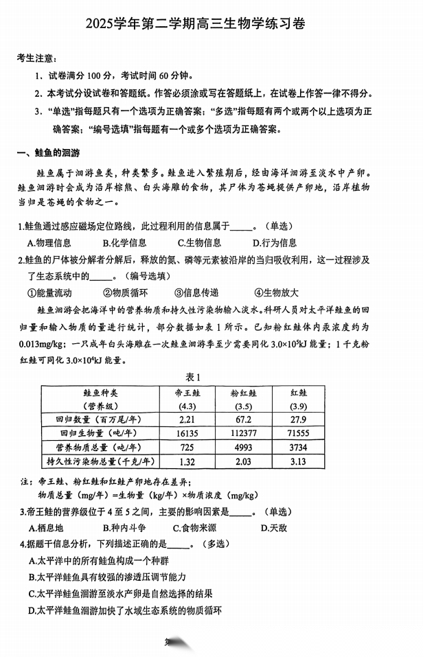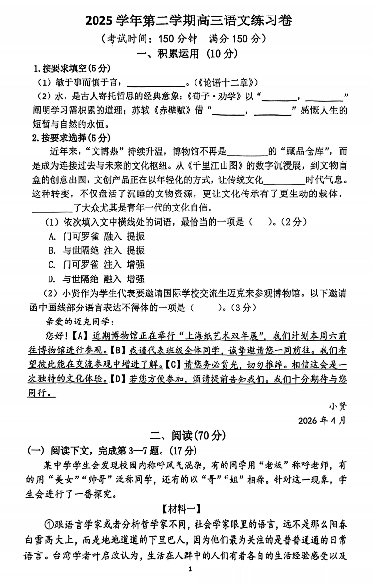 【上海卷】上海市金山区2026届高三年级2025学年第二学期质量监控(金山区高三二模)(4.1-4.2) 全科试题卷(缺历史)+答案 【上海卷】上海市金山区2026届高三年级2025学年第二学期质量监控(金山区高三二模)(4.1-4.2) 全...