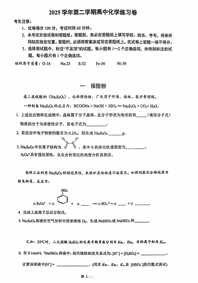 【上海卷】上海市松江区2026届高三年级2025学年高三总复习阶段模拟练习(松江区二模)(4.1-4.2) 理科全科试题卷+答案 【上海卷】上海市松江区2026届高三年级2025学年高三总复习阶段模拟练习(松江区二模)(4.1-4.2) 理科全...