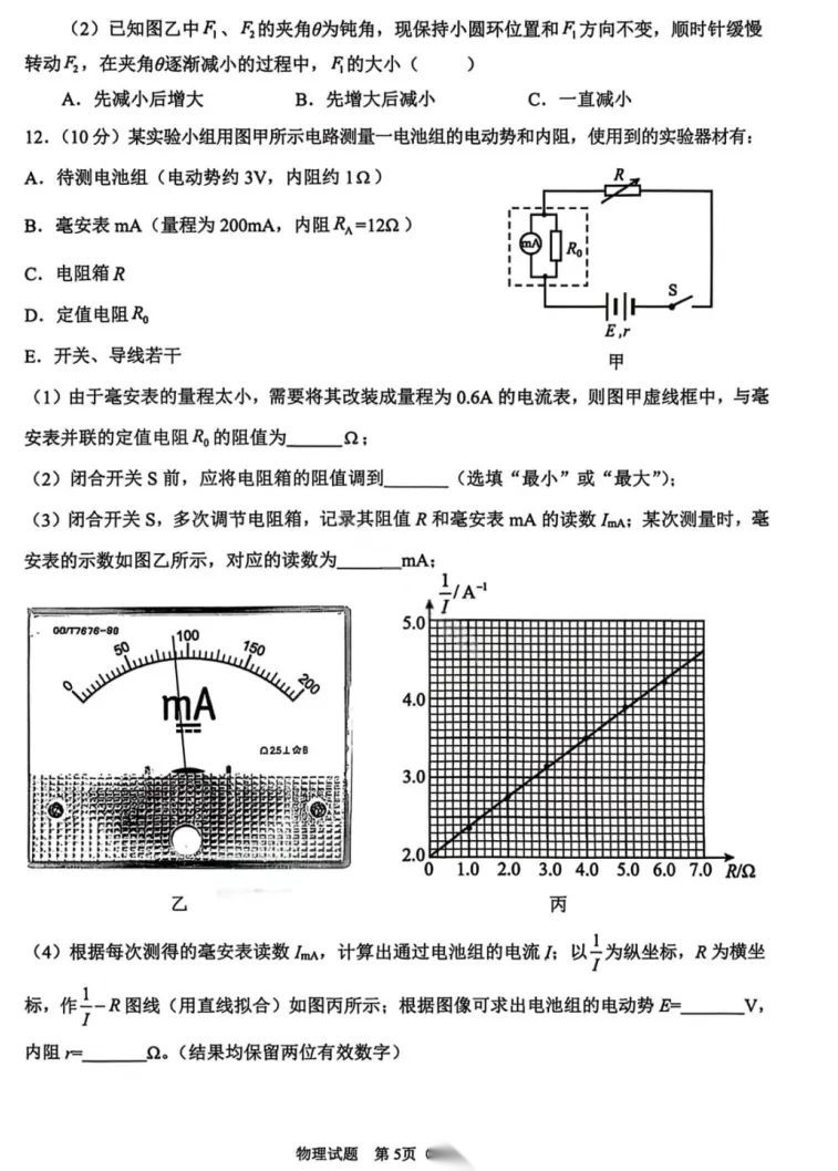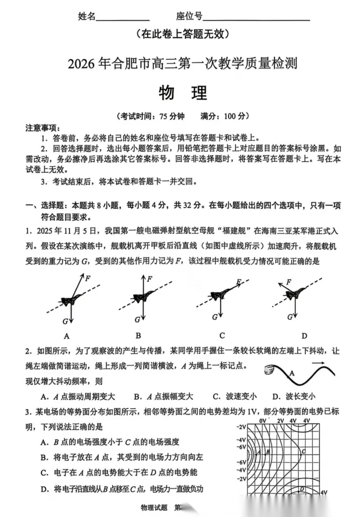 【补齐重发】【安徽卷】安徽省合肥市普通高中2026年高三年级第一次教学质量检测(合肥一模)(2.9-2.10) 全科试卷+答案