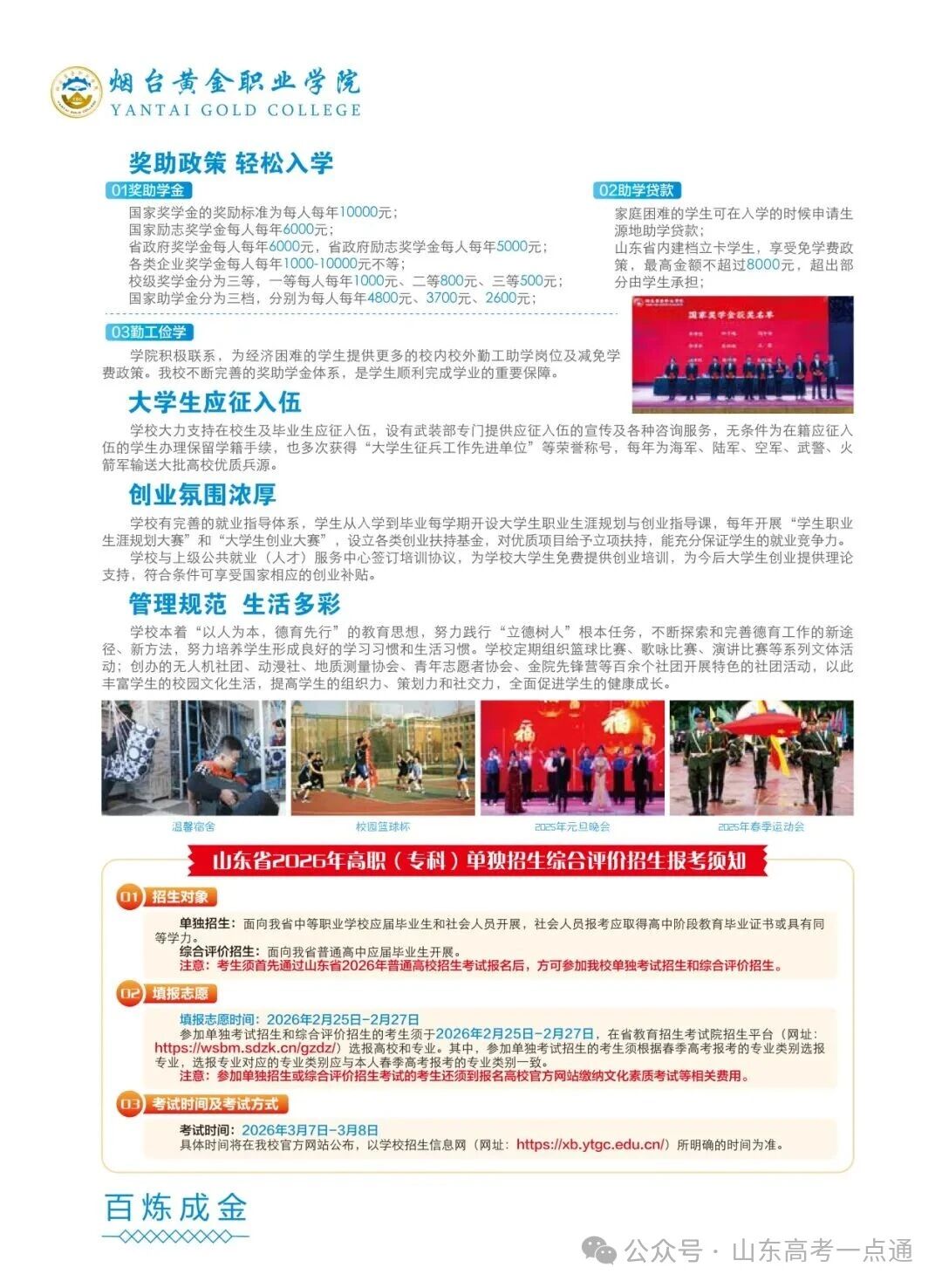烟台黄金职业学院2026年单独考试招生、综合评价招生报考指南