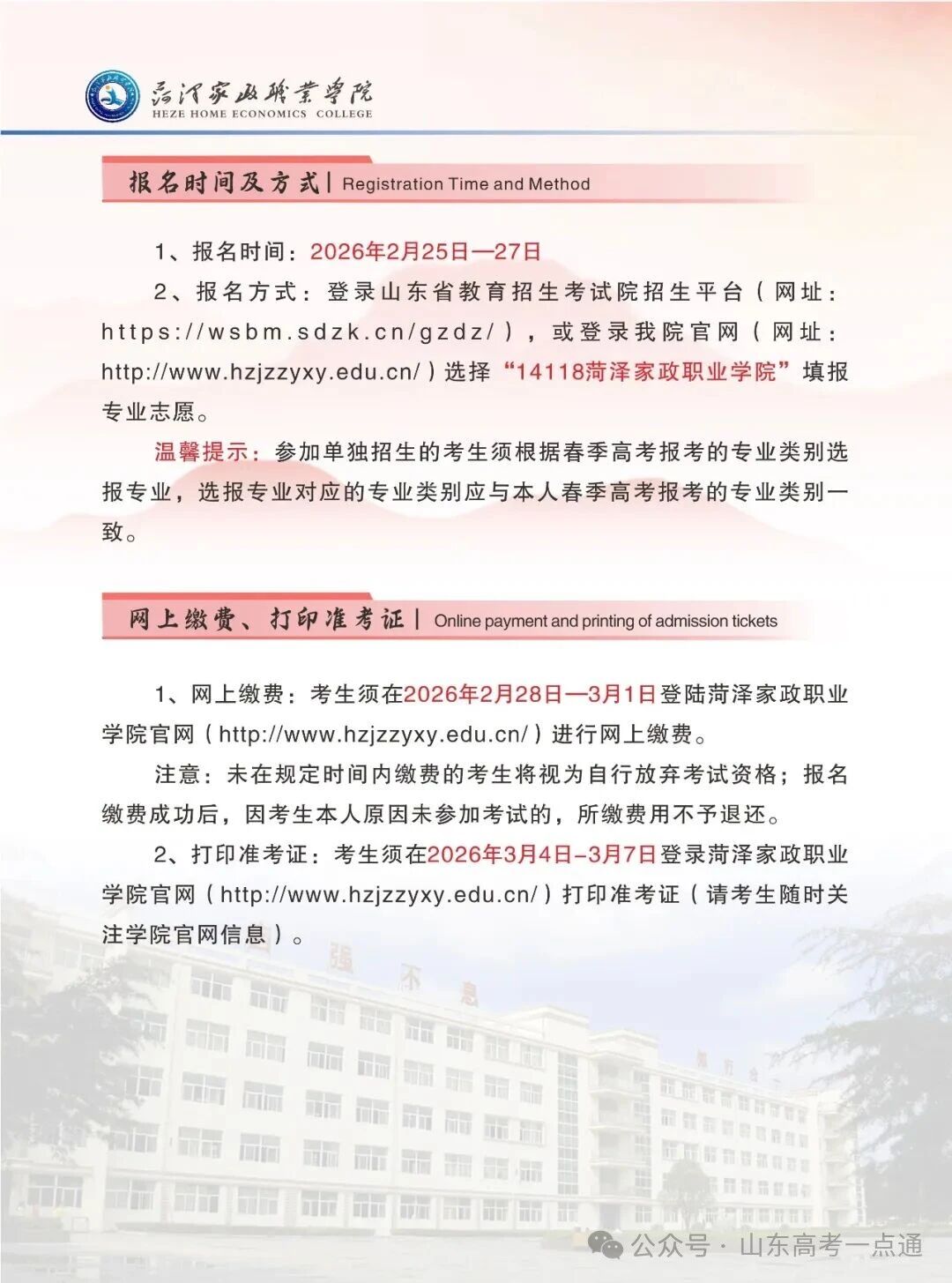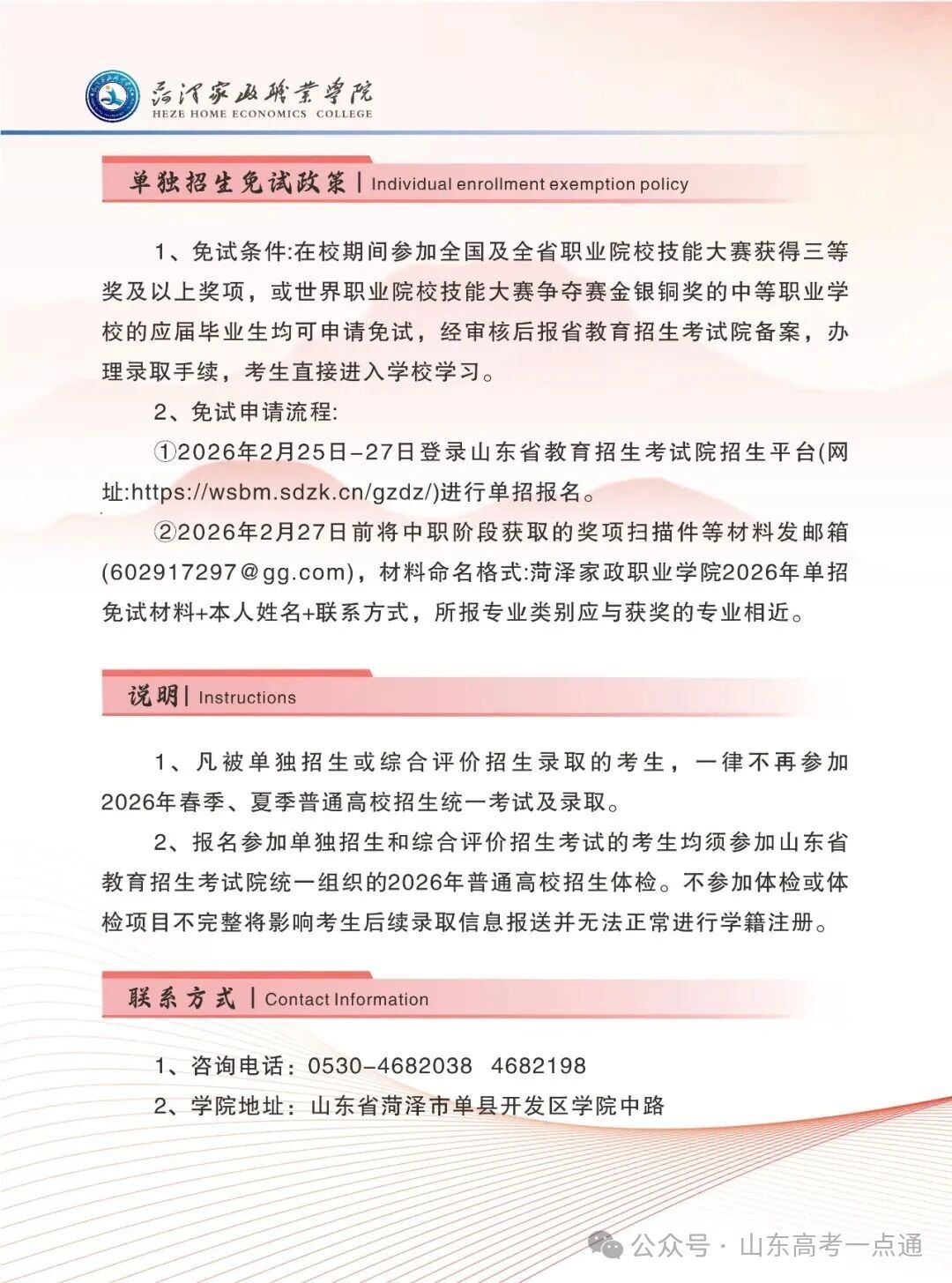 菏泽家政职业学院2026年单独招生、综合评价招生简章