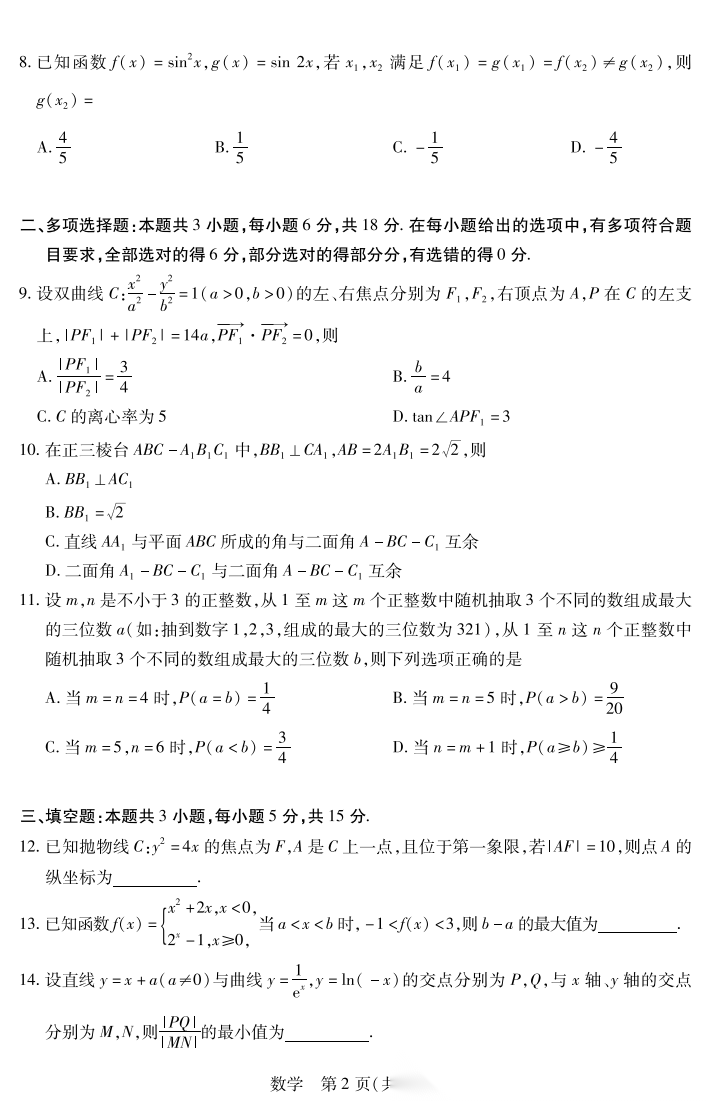 2026届普通高等学校招生全国统一考试模拟试卷二 2026届普通高等学校招生全国统一考试模拟试卷二
