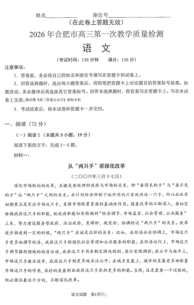2026毫州市高三期末质量检测下载 2026毫州市高三期末质量检测下载