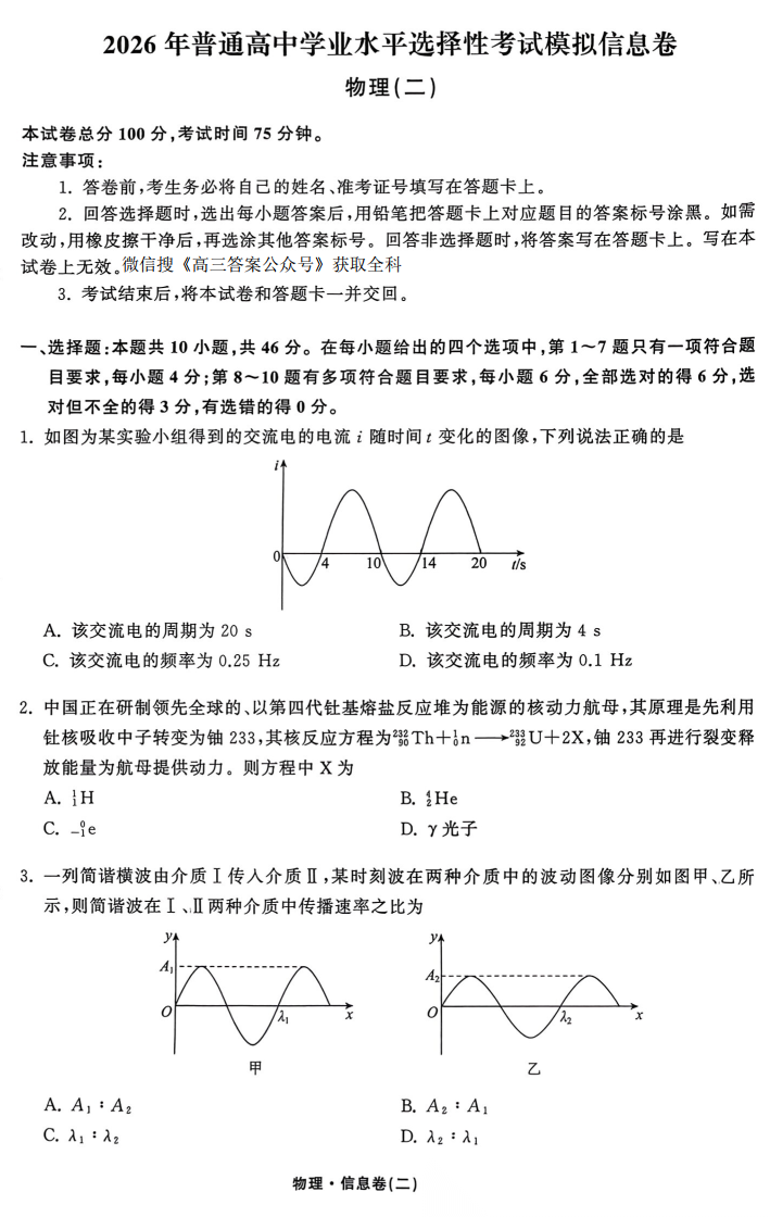2026年普通高中学业水平选择性考试模拟信息卷二
