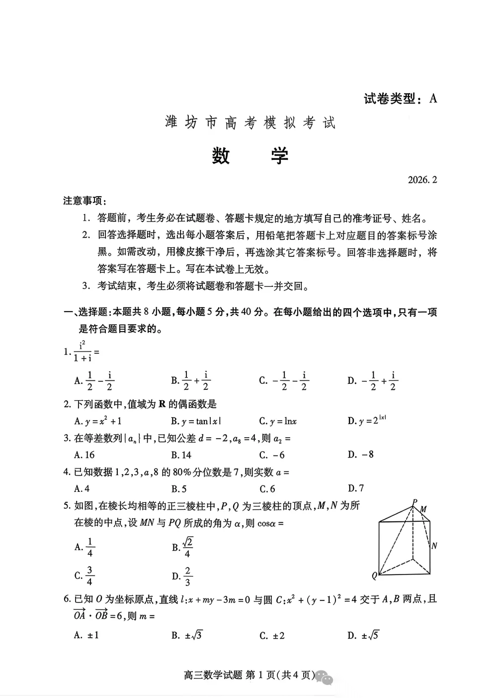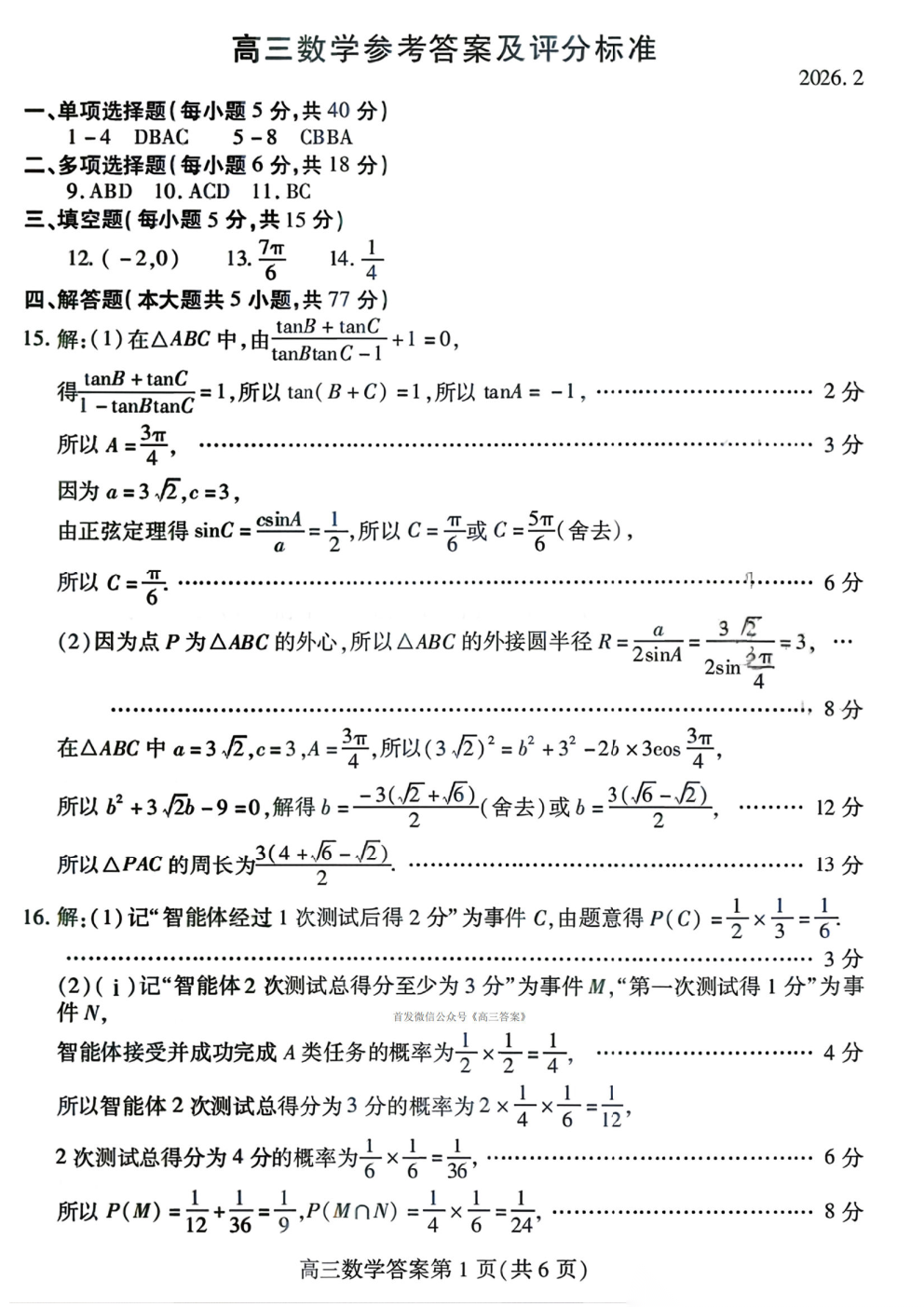 2026圆创高三2月联考答案 2026圆创高三2月联考答案