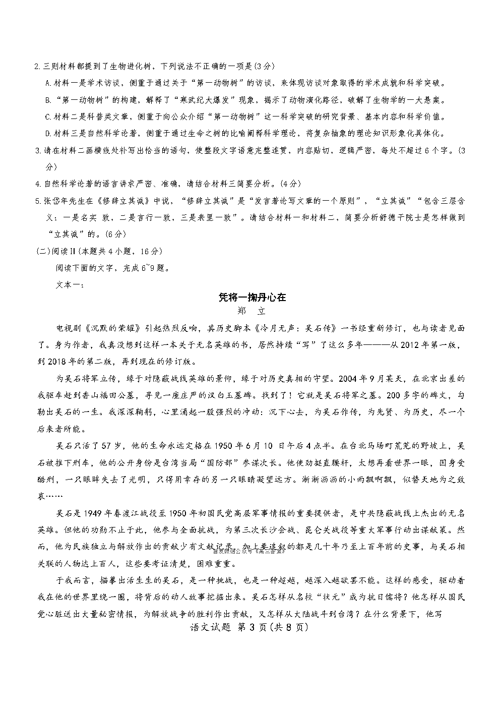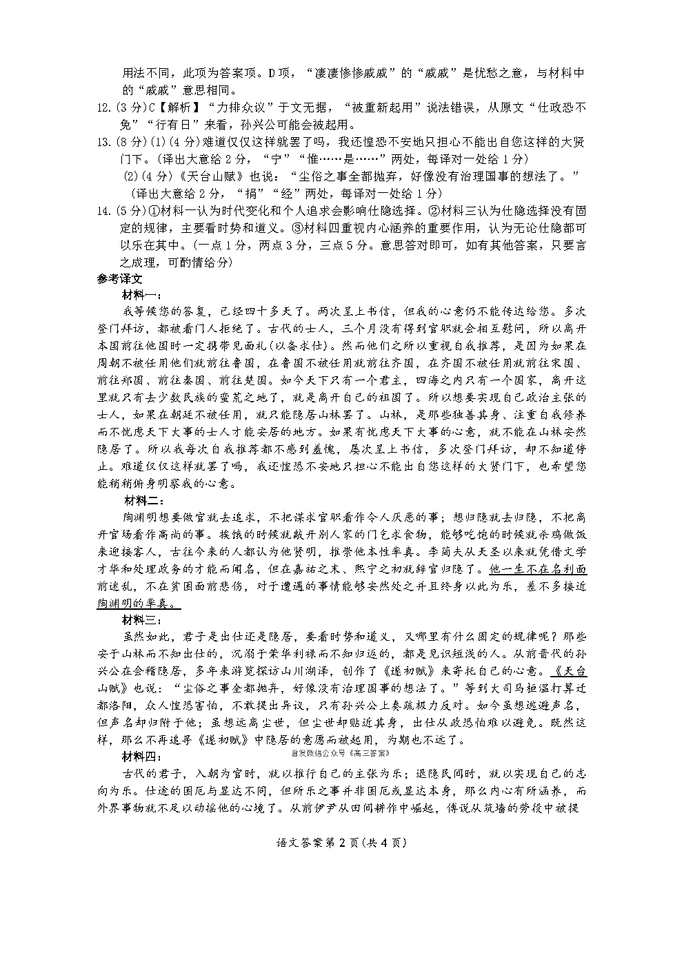 【潍坊一模】高三期末考试答案 【潍坊一模】高三期末考试答案