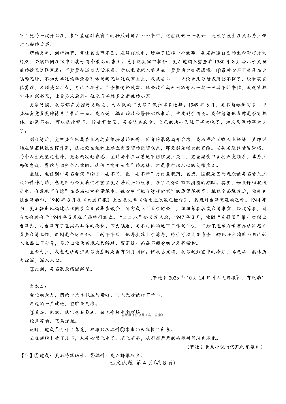 湖南师大附中2026届高三月考试卷六答案 湖南师大附中2026届高三月考试卷六答案