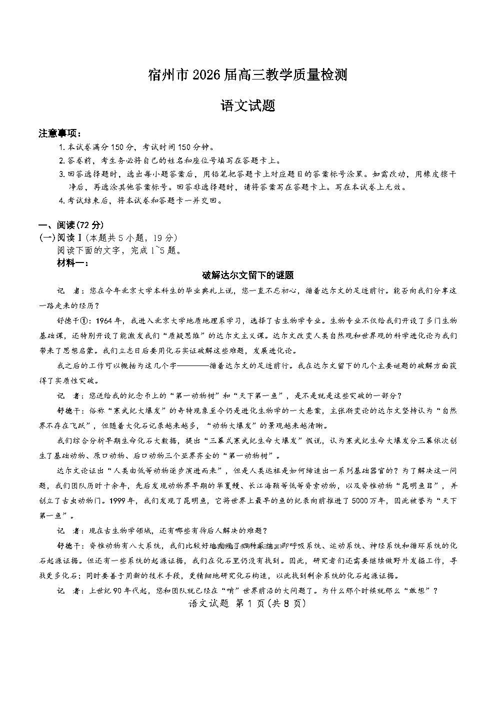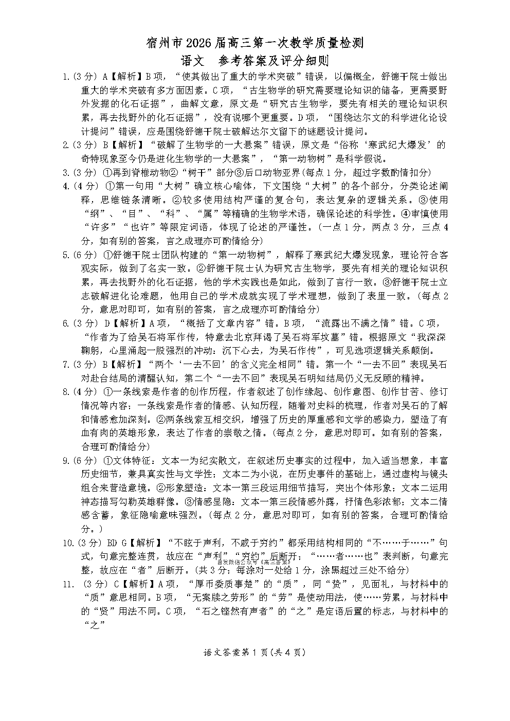 【宿州一模】2026届高三教学质量检测答案