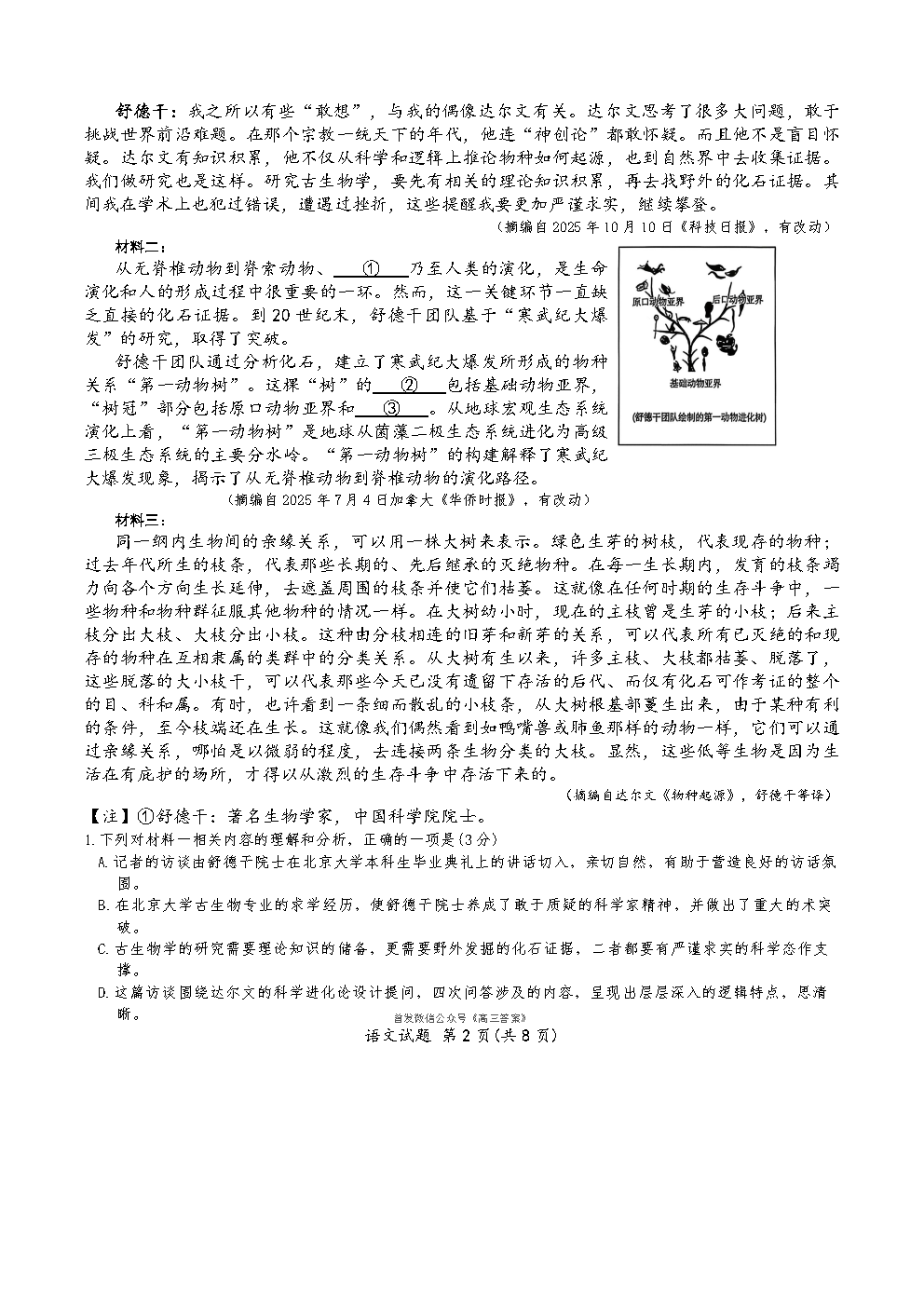 2026圆创高三2月联考答案 2026圆创高三2月联考答案