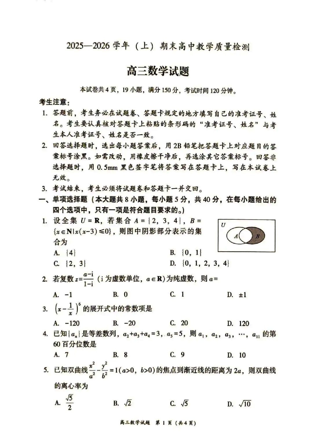 安徽蚌埠市2026届高三年级第第一次教学质量检查考试(蚌埠一模) 安徽蚌埠市2026届高三年级第第一次教学质量检查考试(蚌埠一模)
