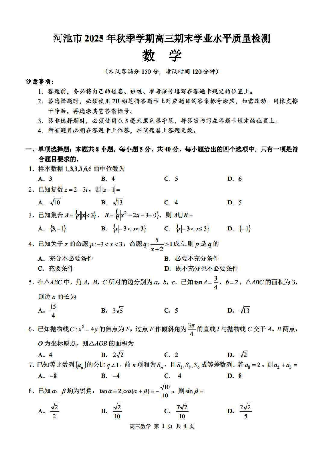 聊城2025-2026学年度高三期末教学质量检测答案 聊城2025-2026学年度高三期末教学质量检测答案