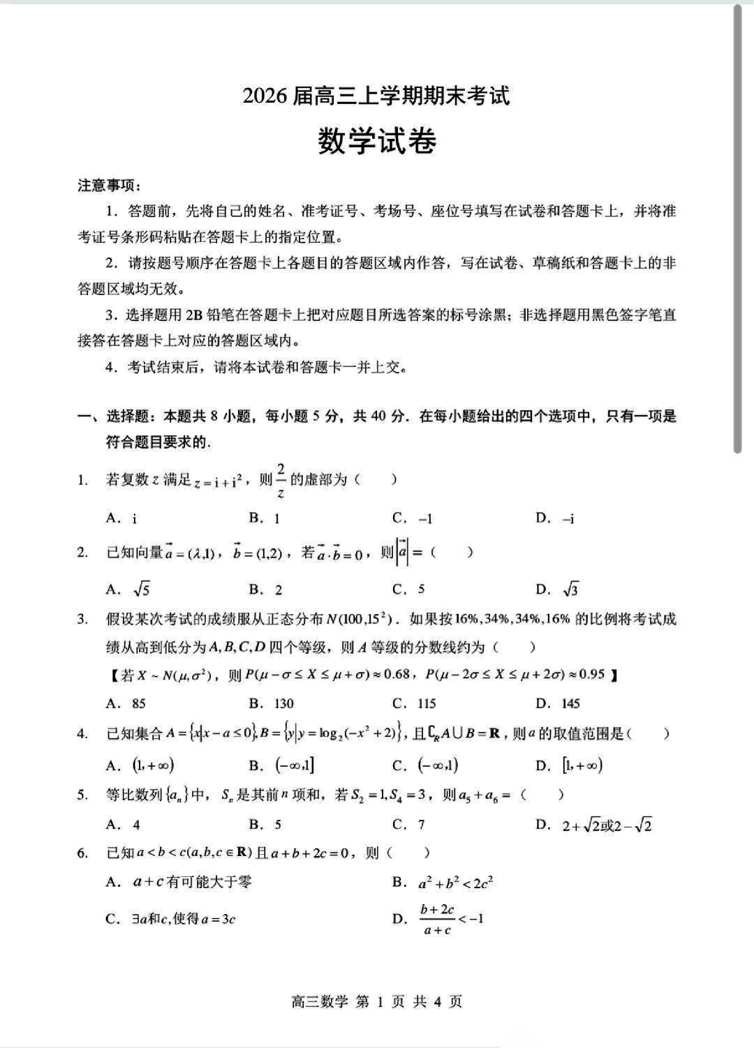 【苏州零模】2026高三期末考试下载 【苏州零模】2026高三期末考试下载