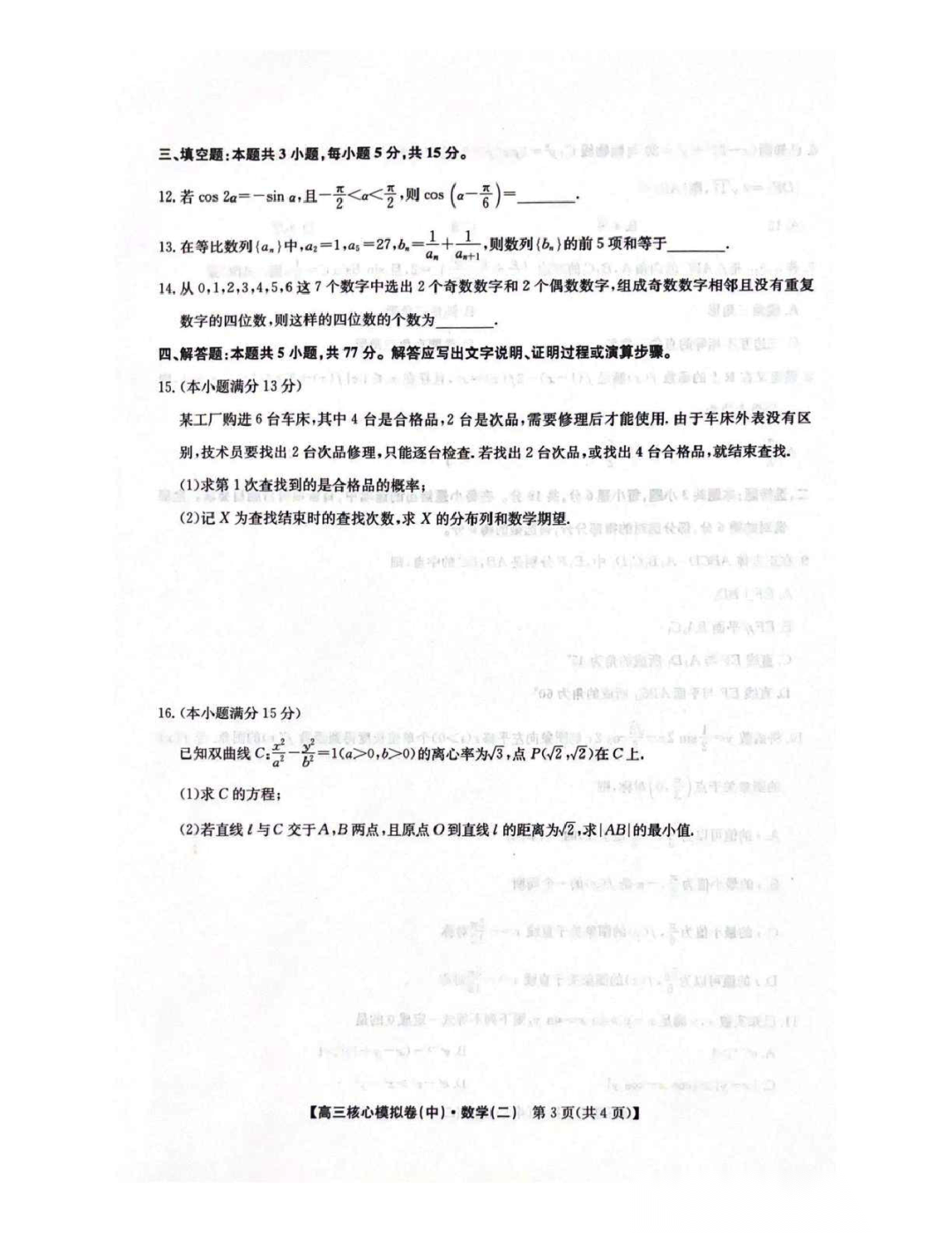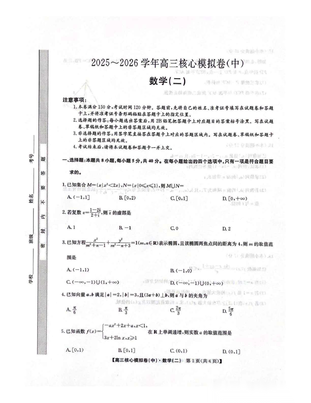 云南省昭通市2026届高三上学期高中毕业班2月期末模拟考试数学(昭通一模) 云南省昭通市2026届高三上学期高中毕业班2月期末模拟考试数学(昭通一模)